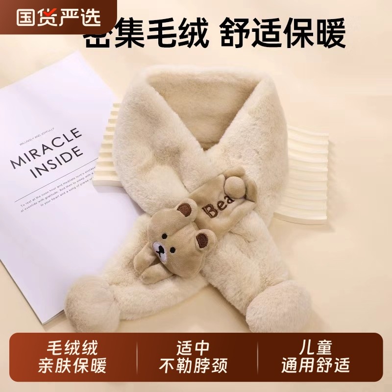 KK树宝宝围巾秋冬季外出保暖儿童围脖防风护颈男童女孩抗静电A类