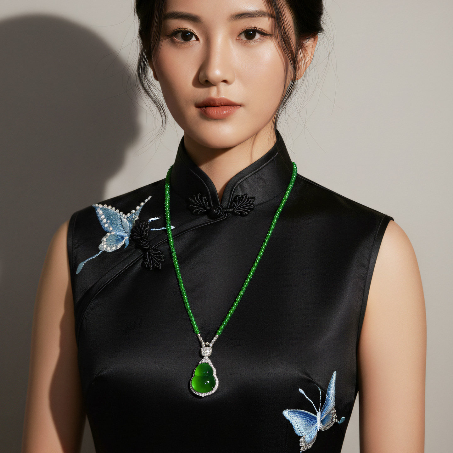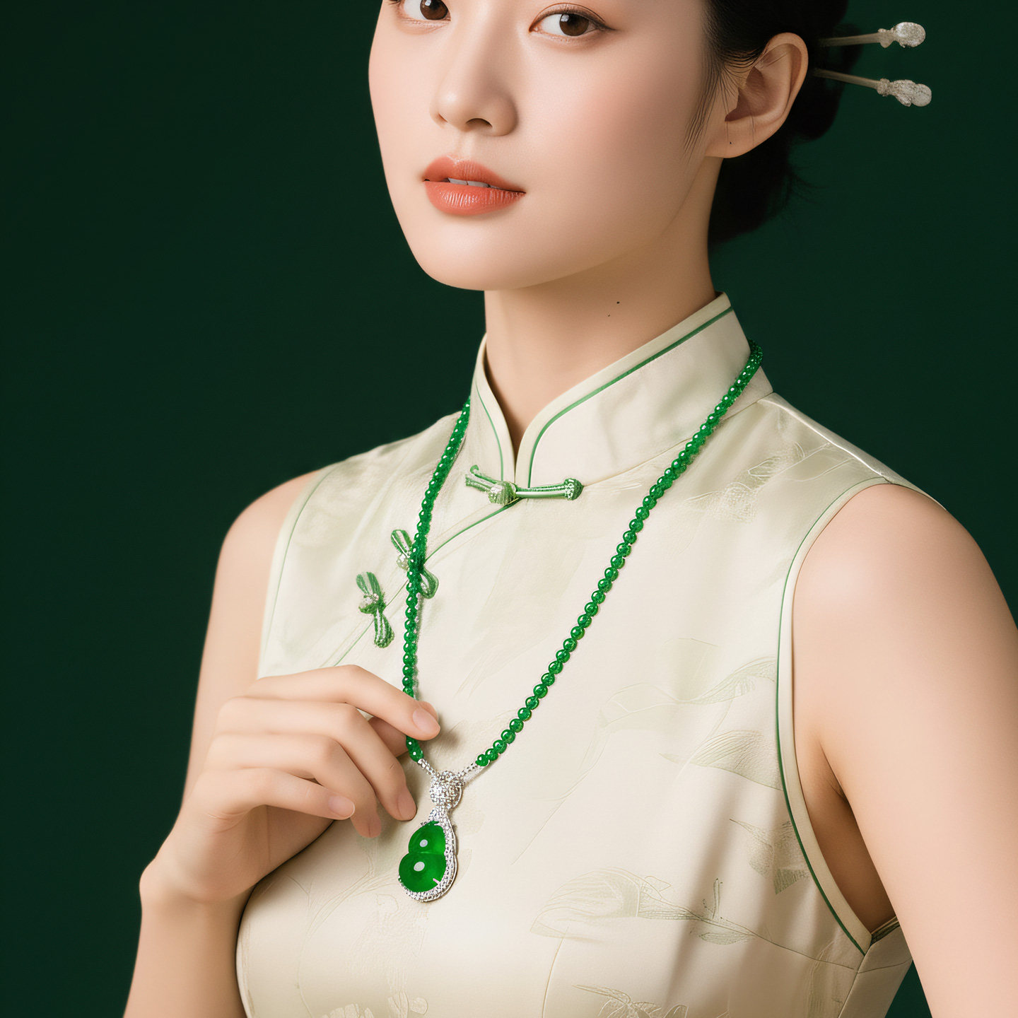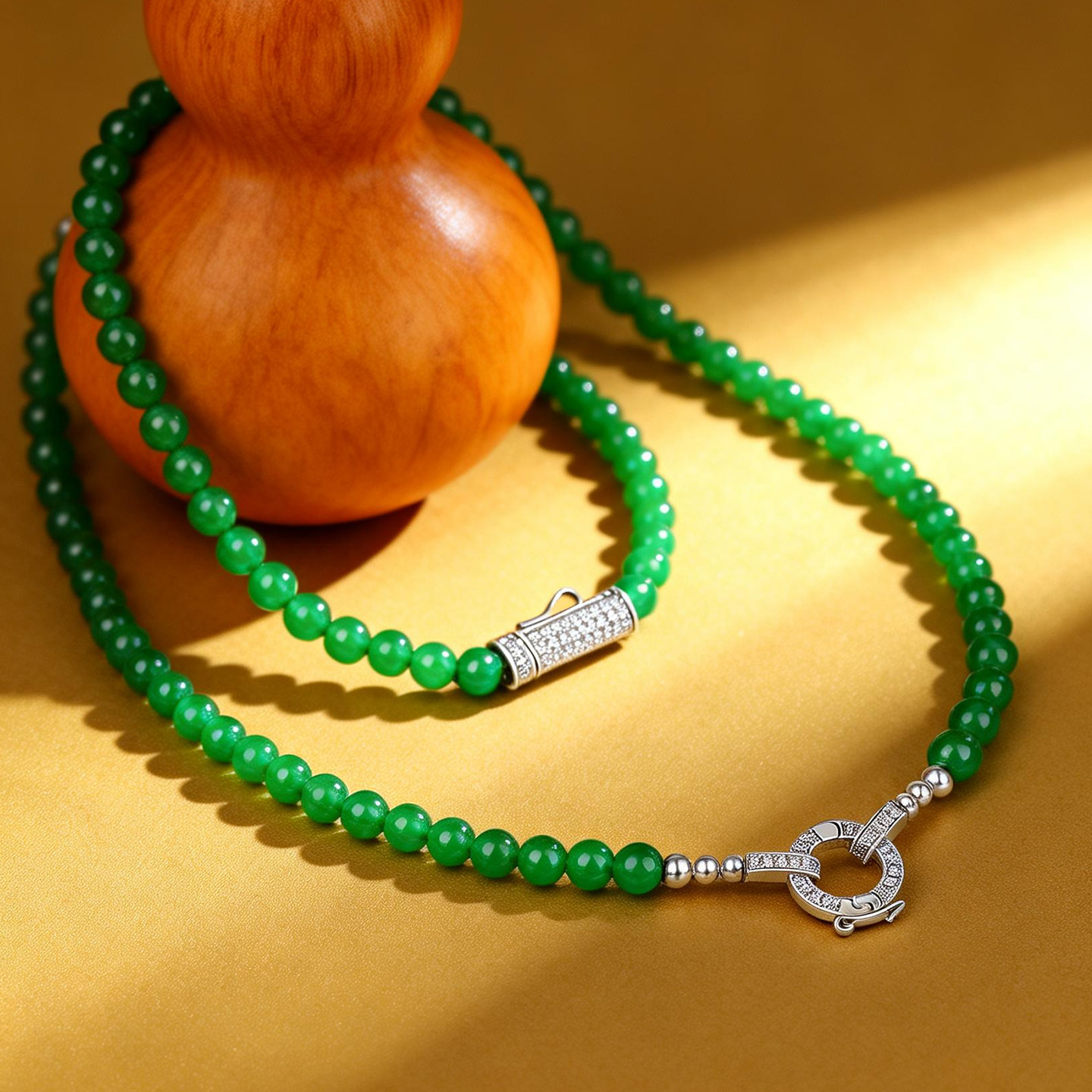 AILEQ 925银天然玉髓绿小米珠串万能链时尚品质珠宝欧若风项链