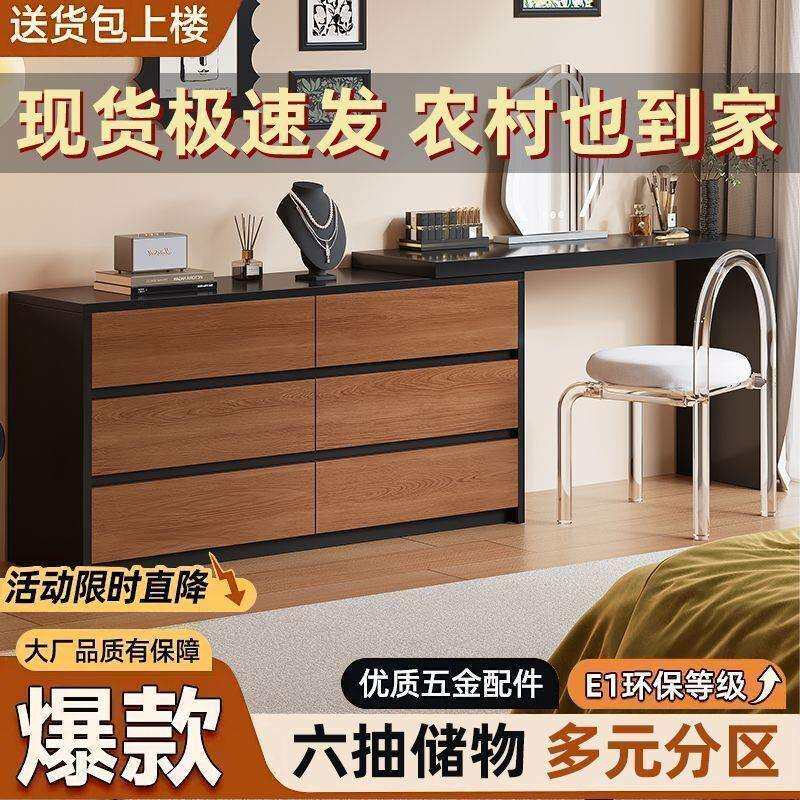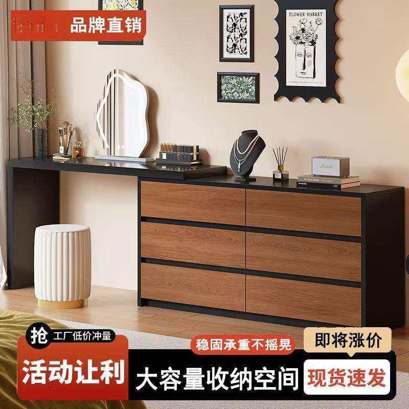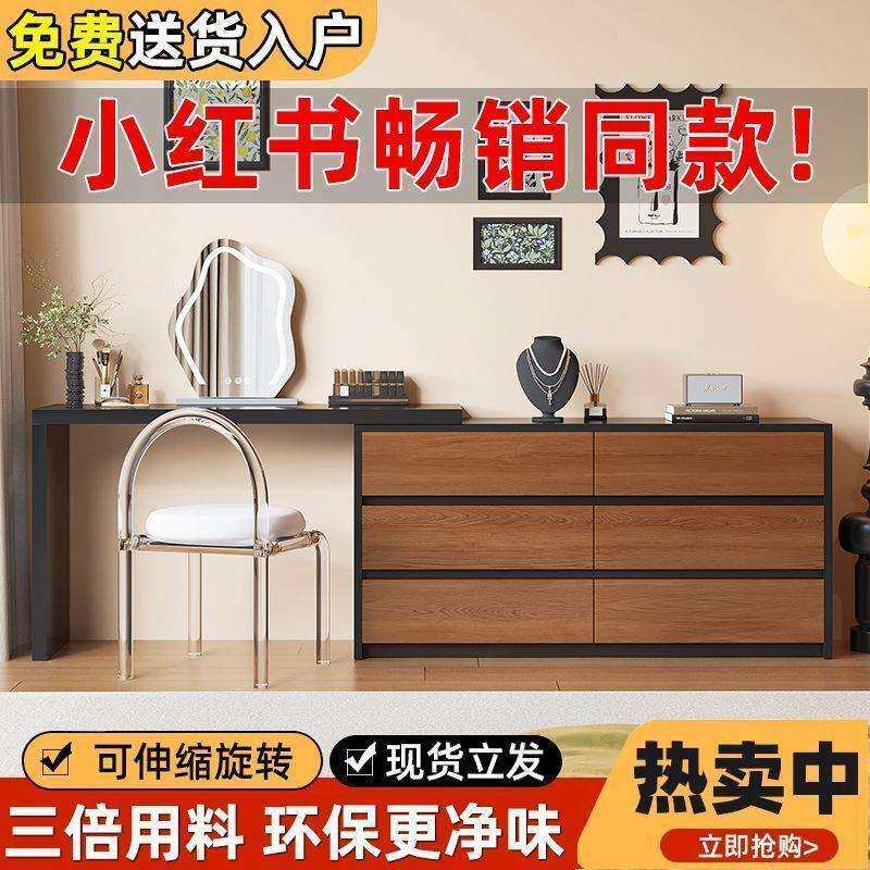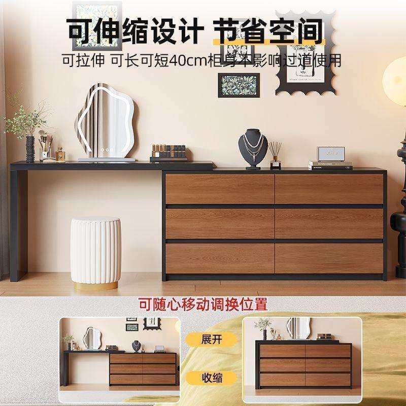 梳妆台卧室现代简约斗柜一体小户型收纳柜轻奢床尾书桌伸缩化妆桌