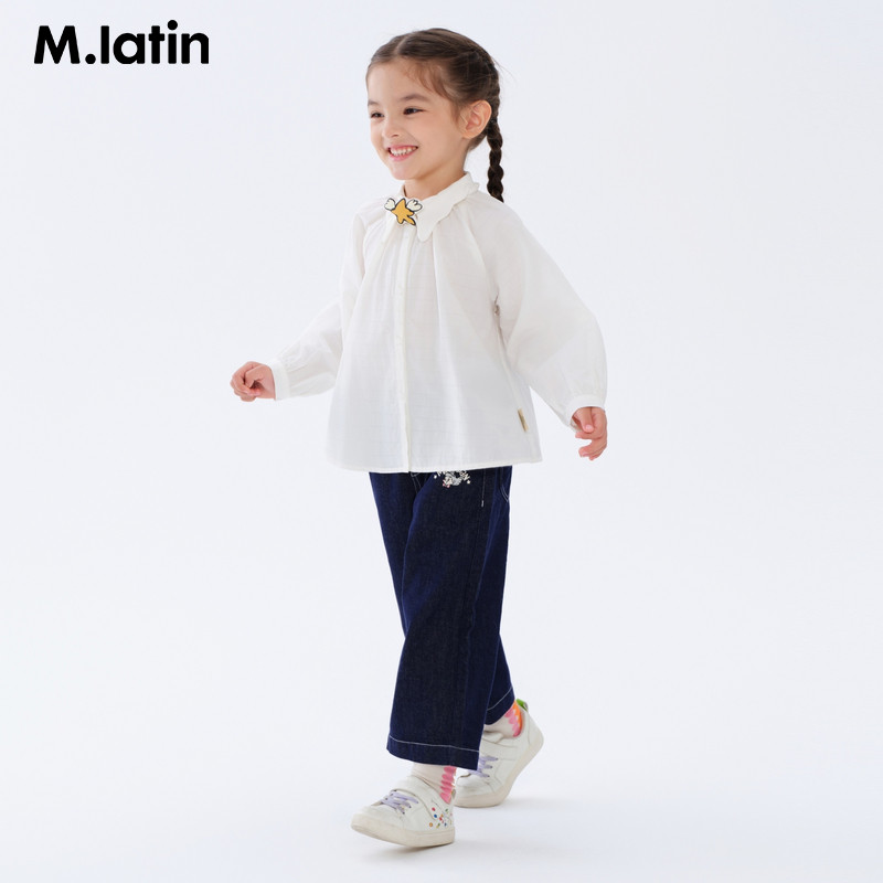 马拉丁童装衬衫秋女小童趣味立体魔法星星领结复古长袖衬衣