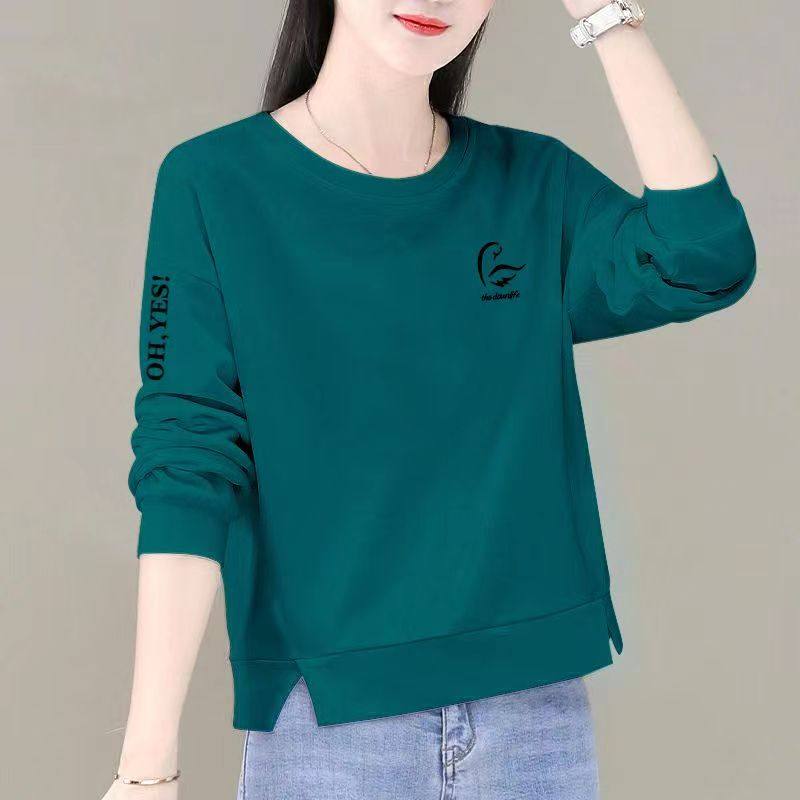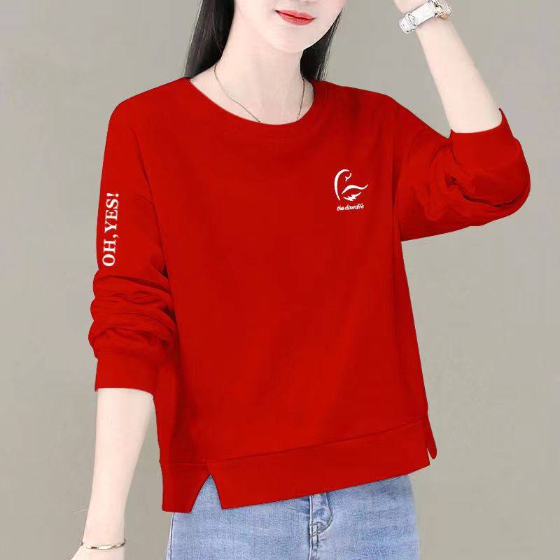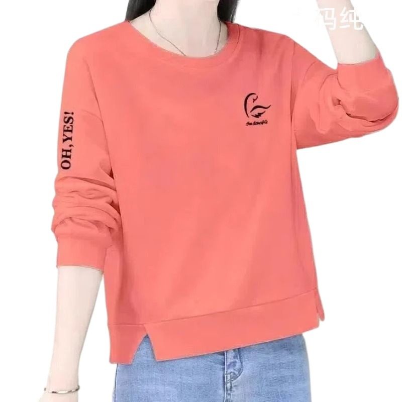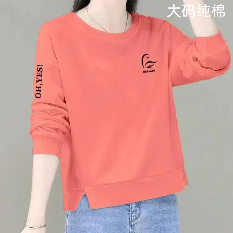 100%纯棉女士长袖卫衣秋款上衣女宽松小个子大码打底衫春款新款U