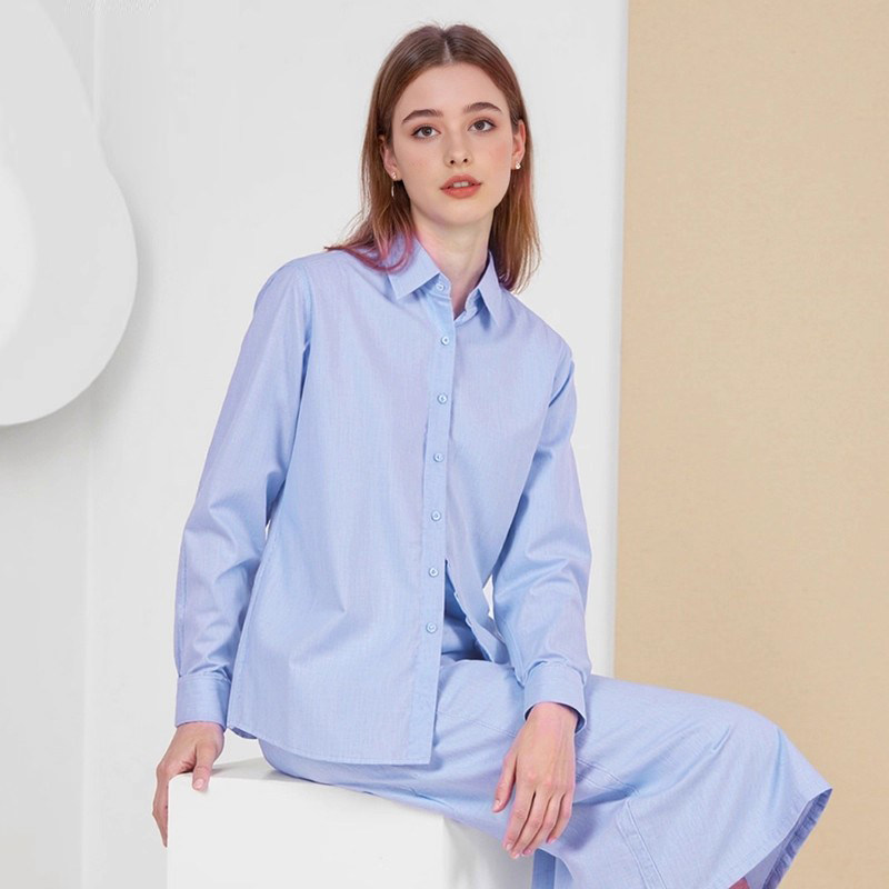 春秋新款白衬衫女职业蓝色长袖通勤面试正装衬衣工作服宽松上衣夏