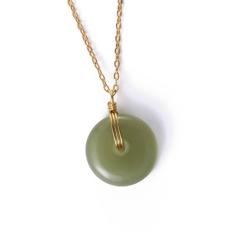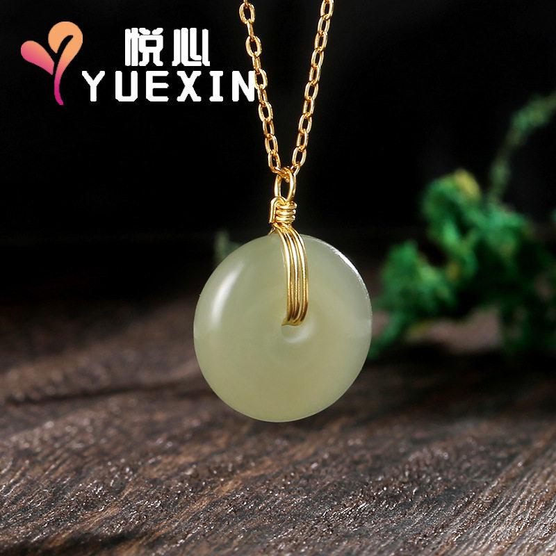 S925纯银和田玉项链女民族风ins小众设计感平安扣吊坠锁骨链配饰