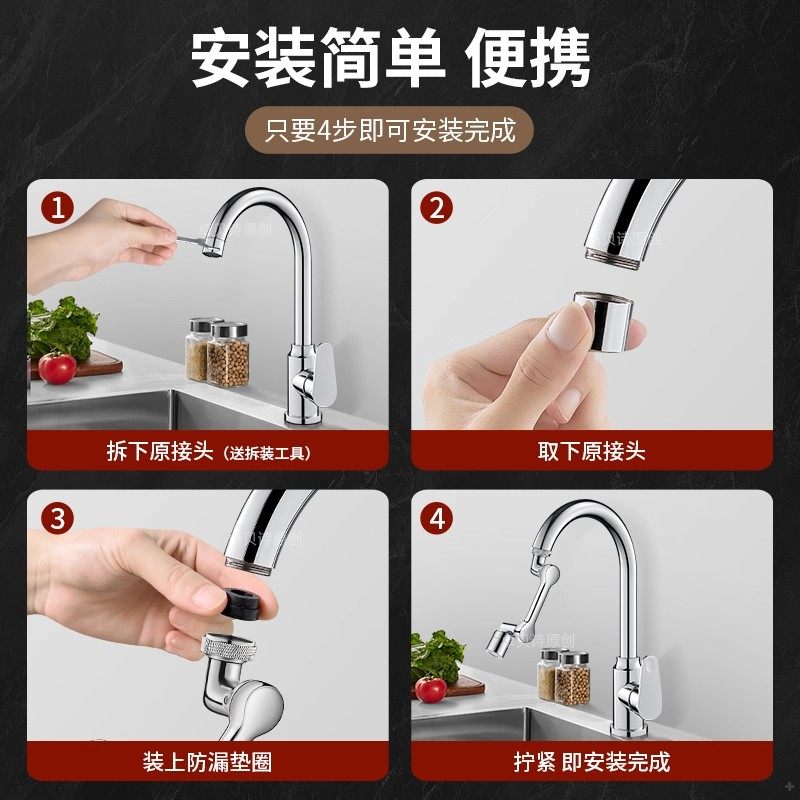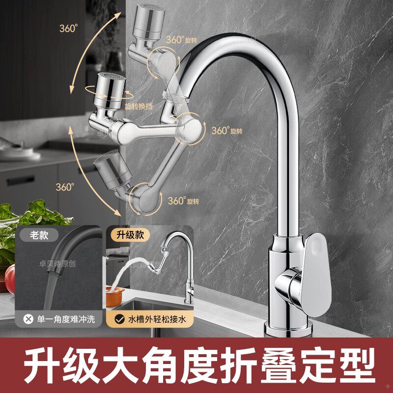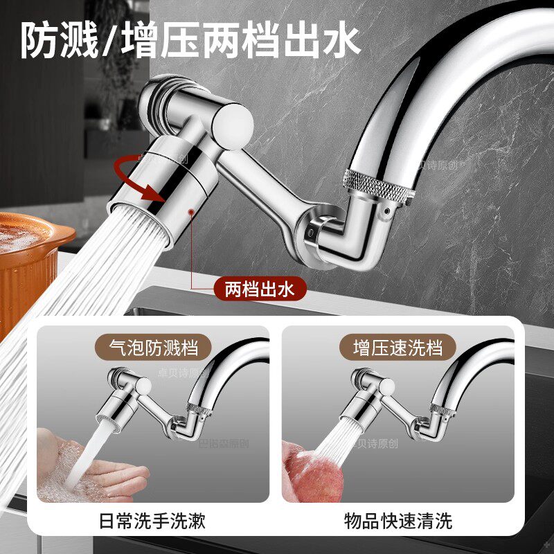 德国机械臂304不锈钢万向水龙头延伸器防溅神器卫生间面盆转接头