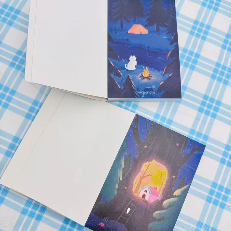 A7「林中呼唤」原创无胶便签手帐素材本 手绘彩色涂鸦猫咪循环