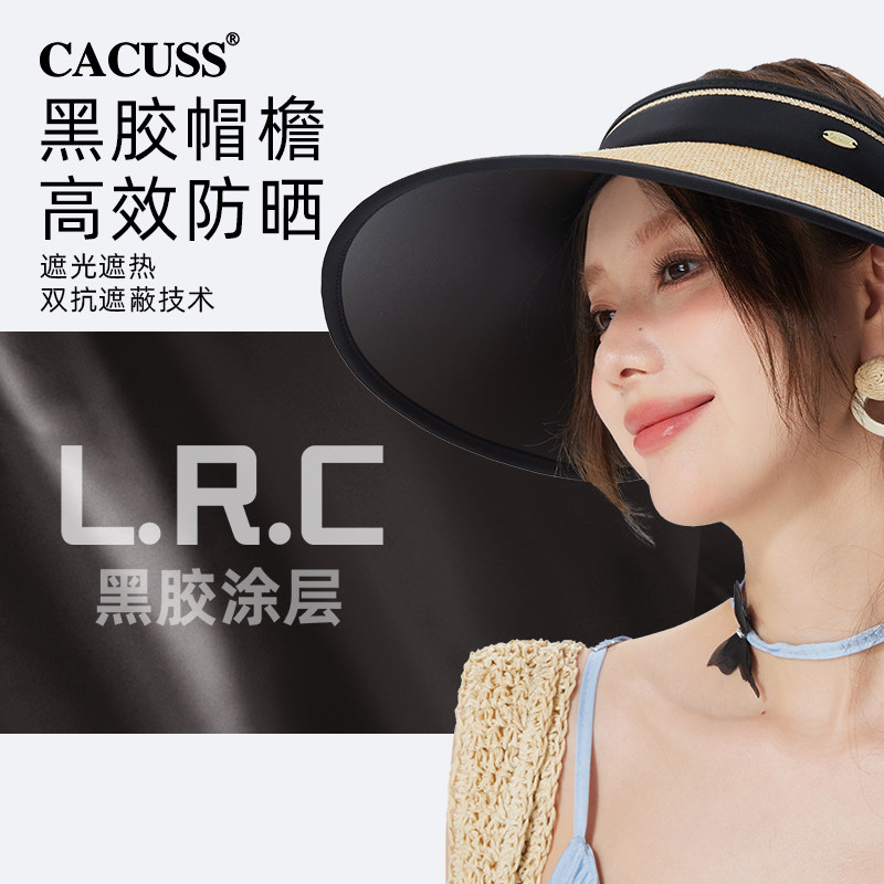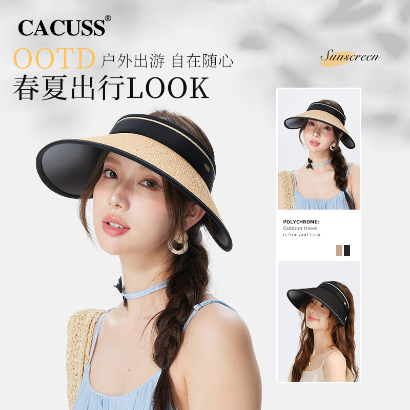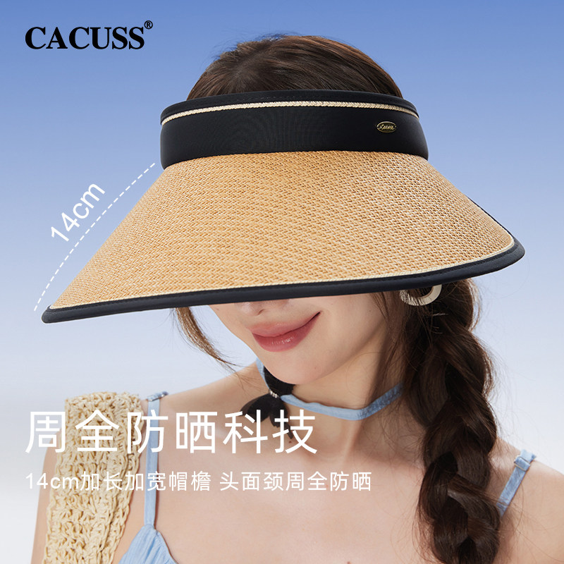 CACUSS防晒帽女2025夏季遮阳帽防紫外线大檐可折叠遮脸空顶草帽子