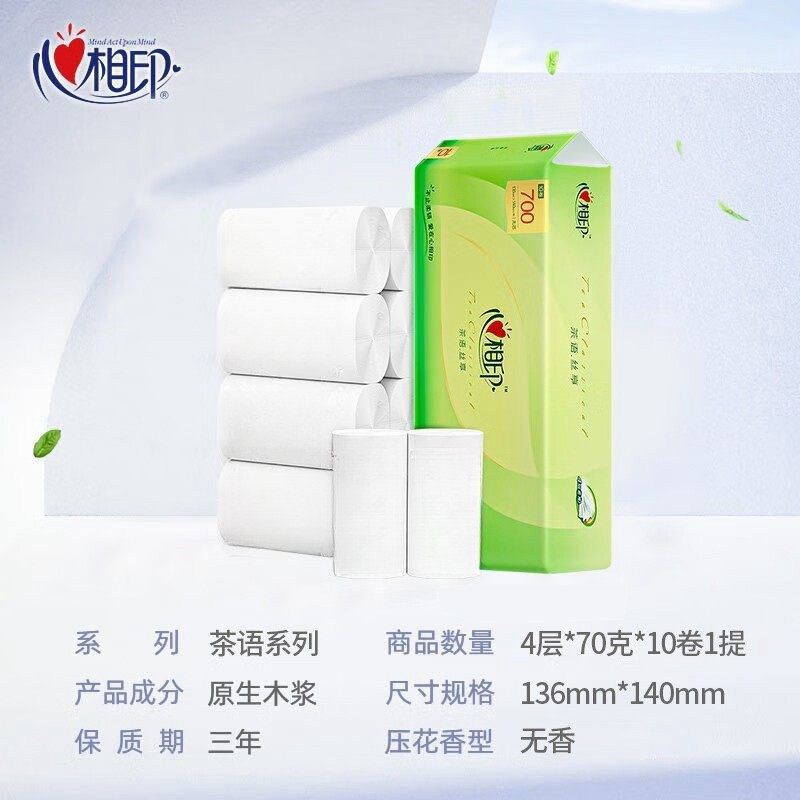 心相印无芯卷纸茶语丝享700g10卷家用实惠装厕所卫生纸卷筒纸木浆