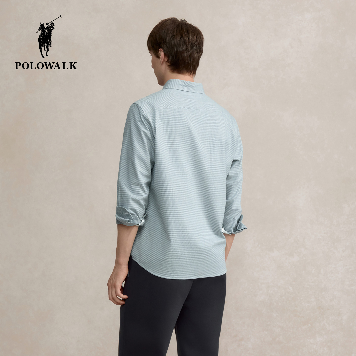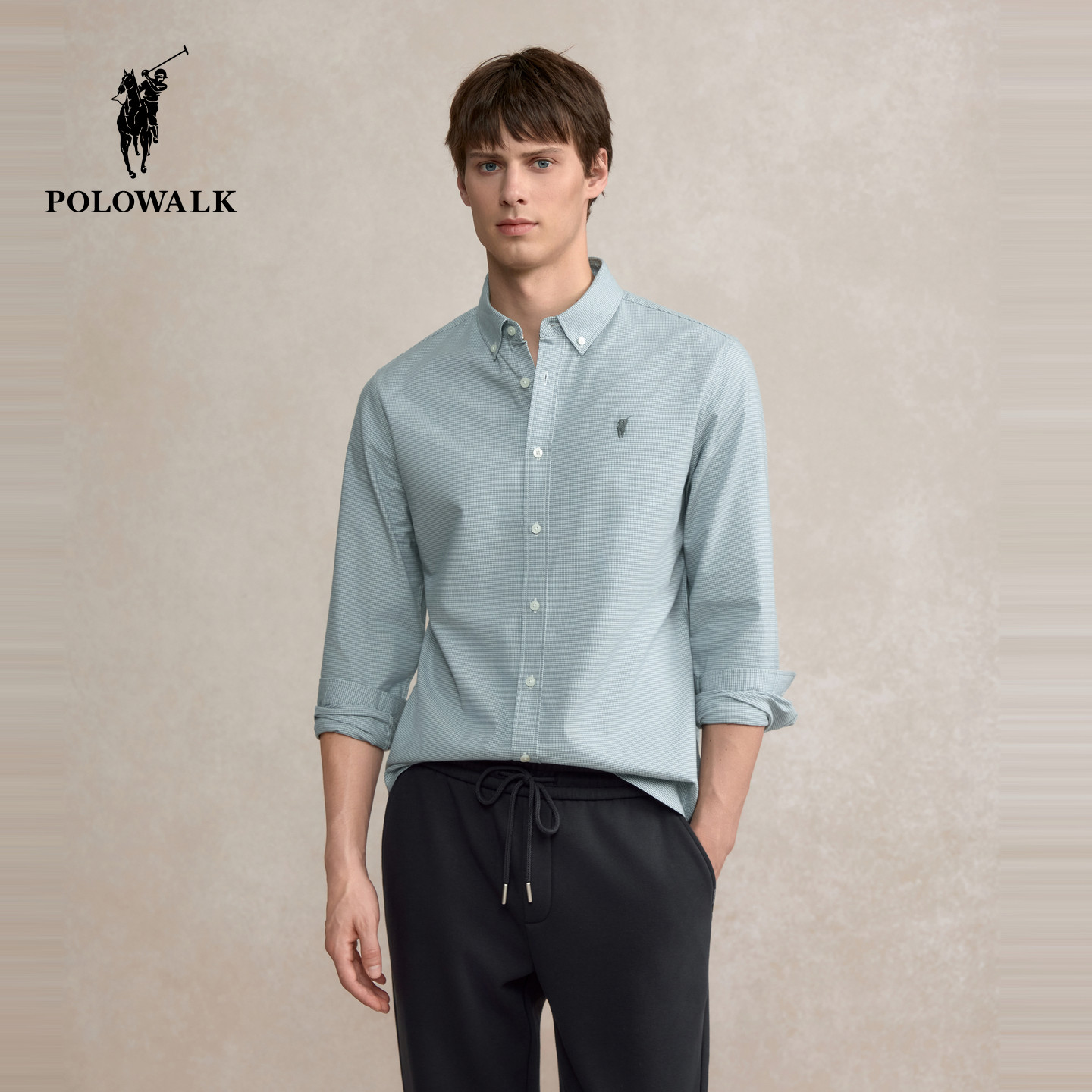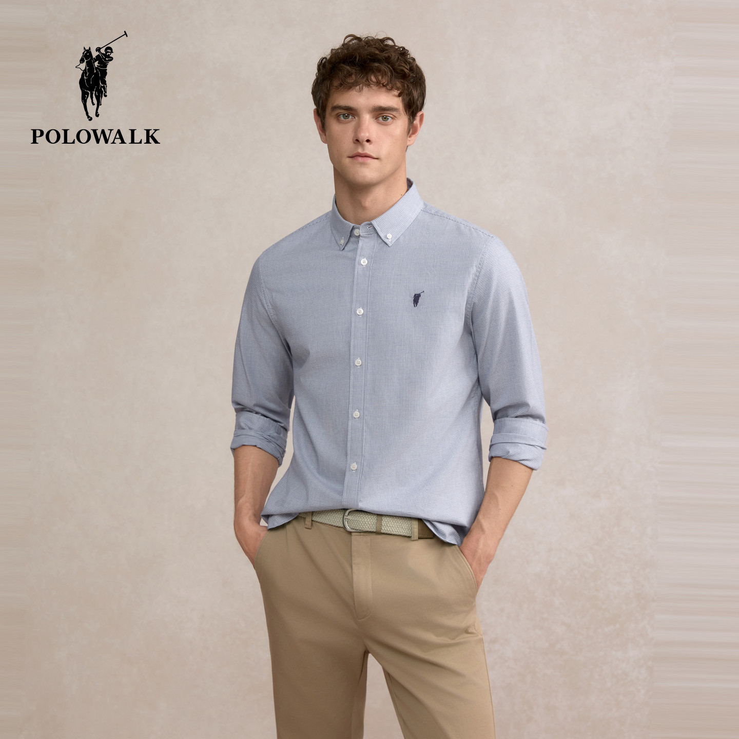 【100%纯棉】POLOWALK男式长袖衬衫2025秋季新品格纹商务休闲上衣