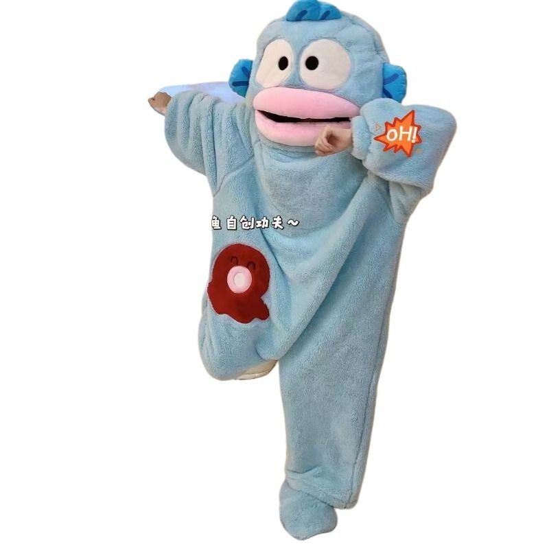 丑鱼睡衣女秋冬季珊瑚绒情侣连体搞怪睡袍男款加厚睡裙女加绒新年