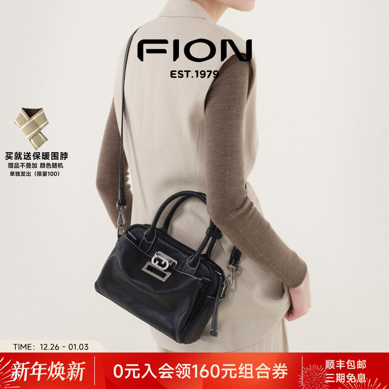Fion/菲安妮真皮波士顿包2025新款高级感通勤手提包女单肩斜挎包