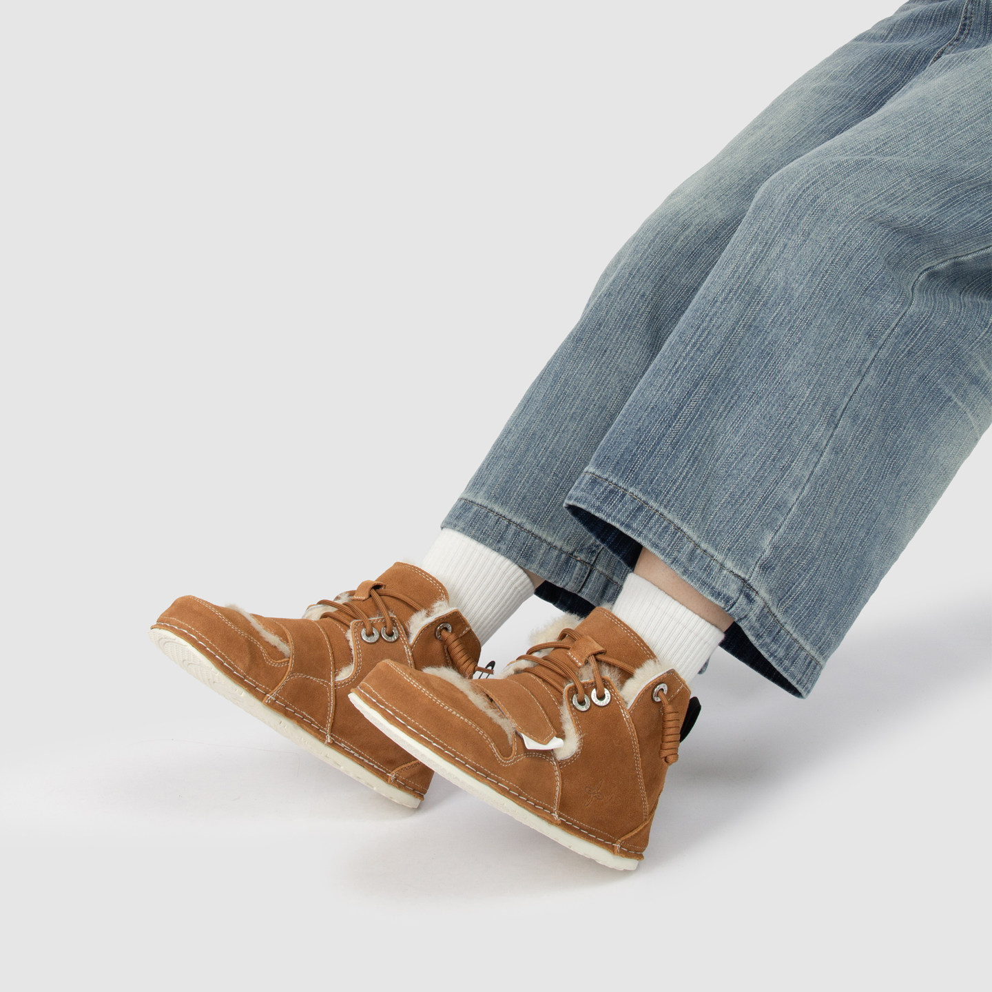 THEMULE高帮雪地靴女真皮丑萌鞋羊皮毛一体毛毛鞋魔术贴大头宽楦
