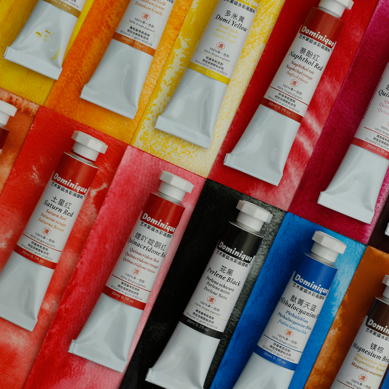多米尼格艺术家级管状水彩颜料20ml对标进口品牌高浓度单一色粉