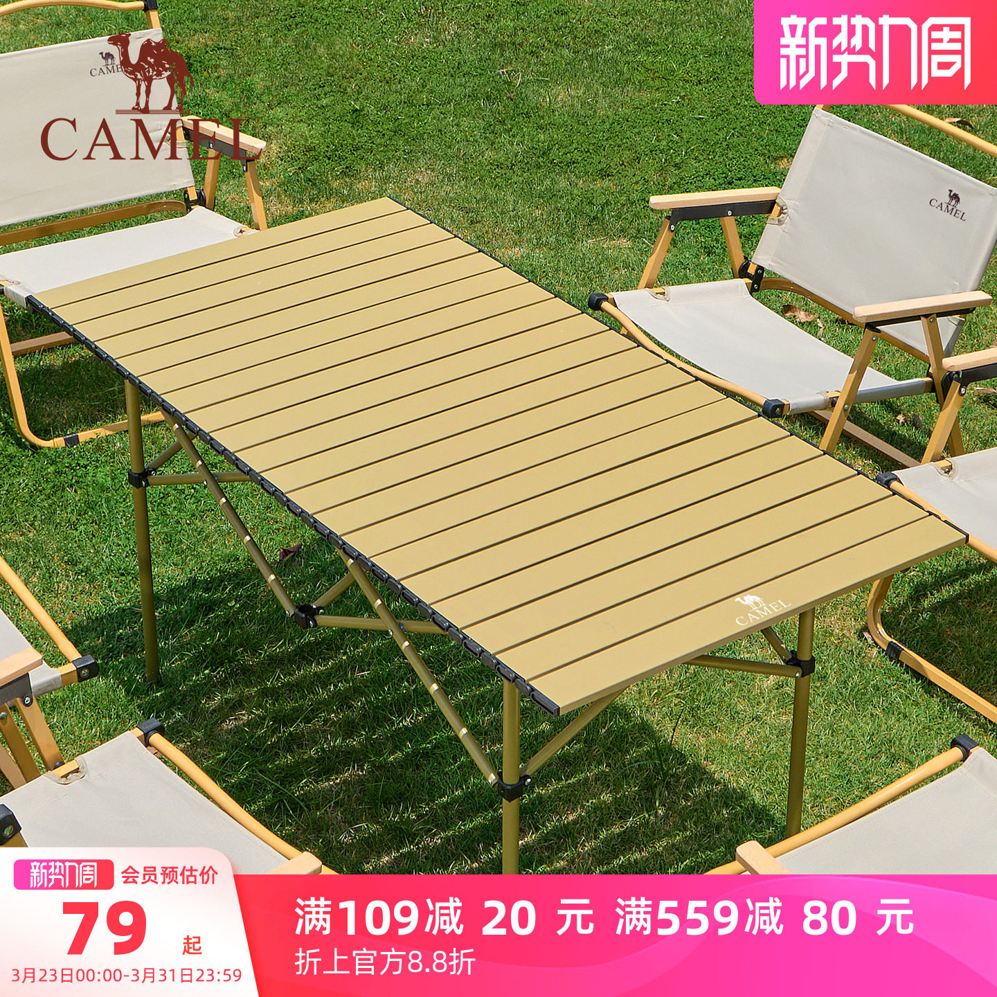 骆驼户外折叠桌铝合金野餐桌子露营桌装备蛋卷桌套装野外野营桌椅
