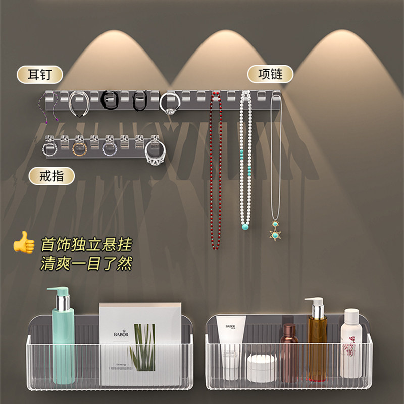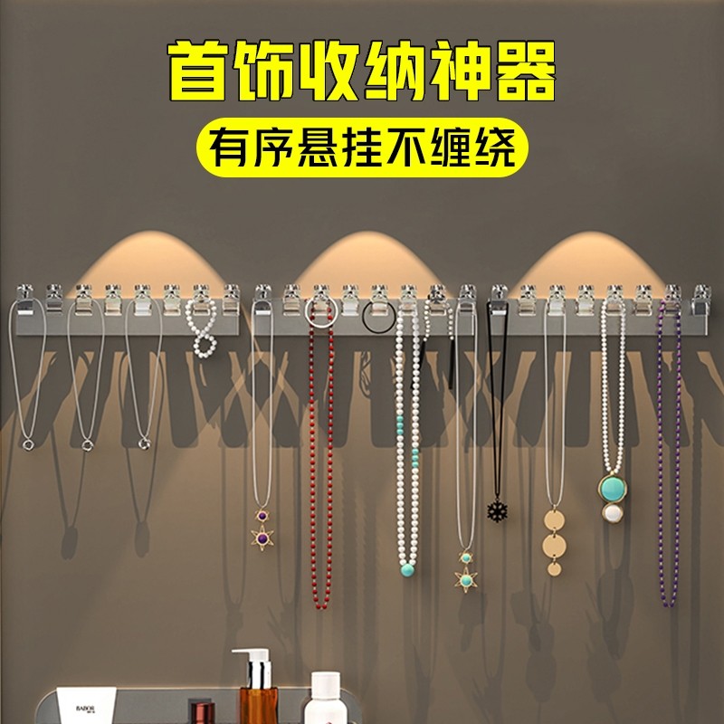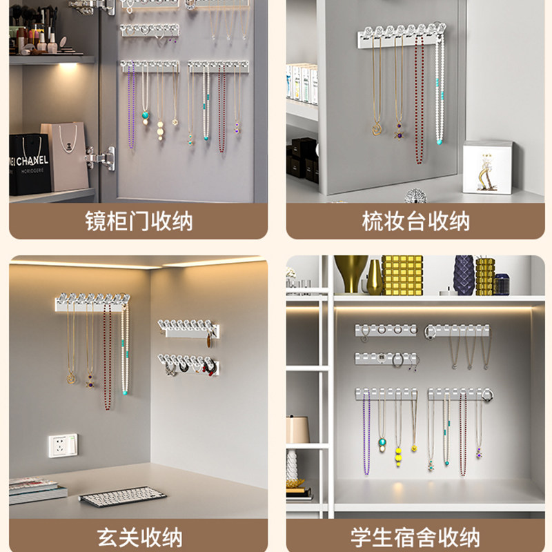 镜柜门后项链收纳挂架手链耳环联排挂钩防缠绕壁挂式首饰品展示架