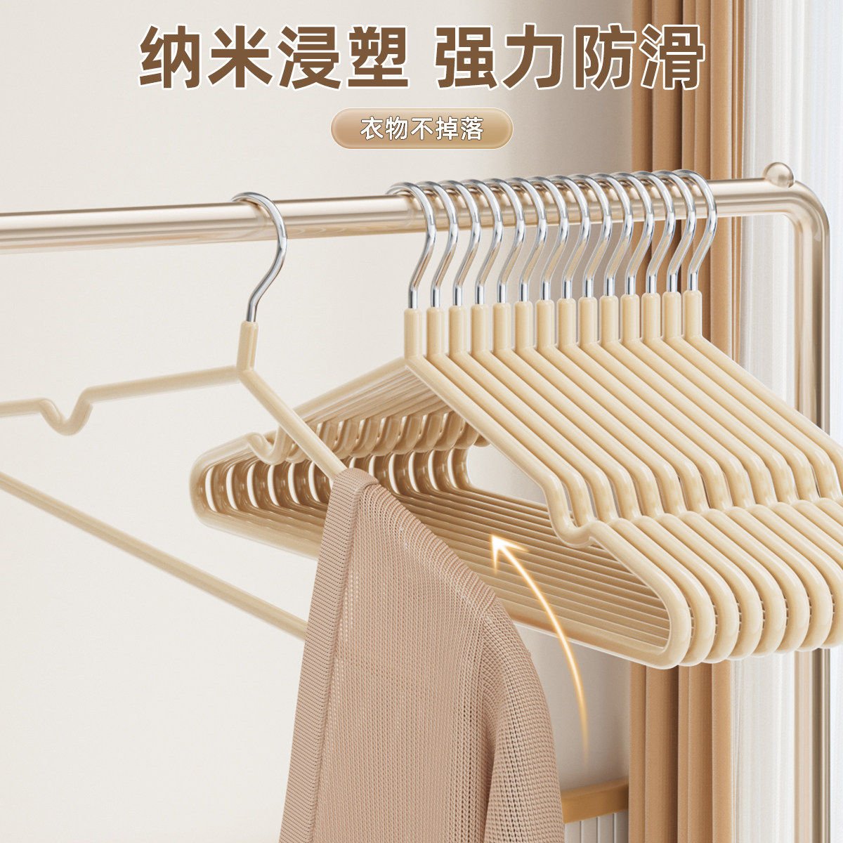 衣架家用挂衣100个不锈钢加粗宿舍用学生防滑无痕晾衣服挂钩撑子