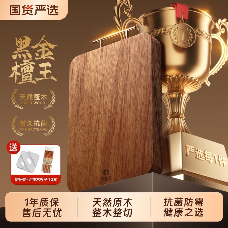 原森太黑金檀木整木菜板家用抗菌防霉厨师用案板厨房实木切菜砧板