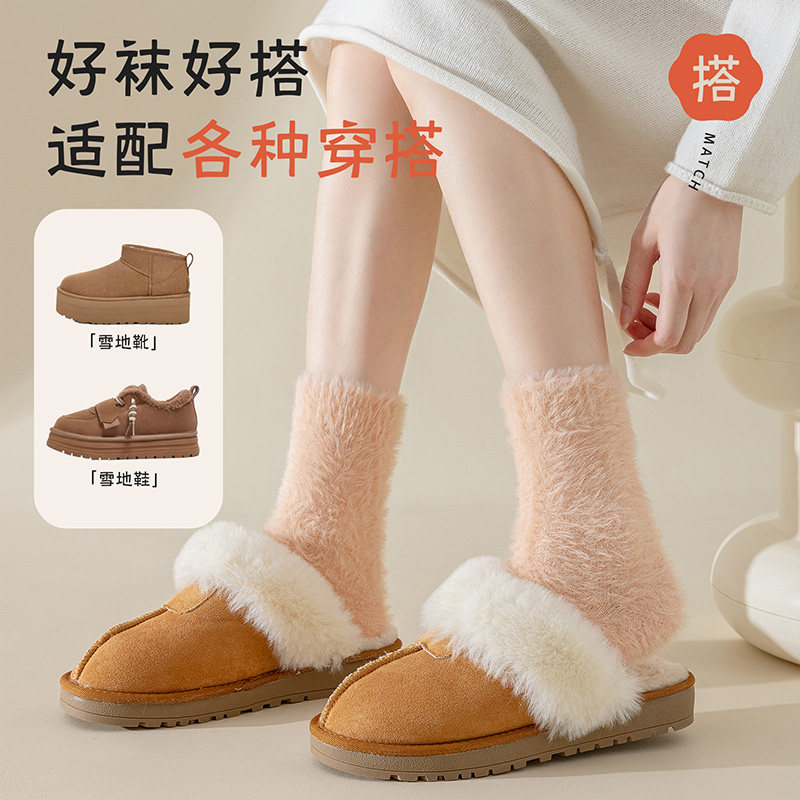 睡觉穿的水貂绒袜子女加绒加厚中筒袜月子袜保暖秋冬季睡眠袜暖脚