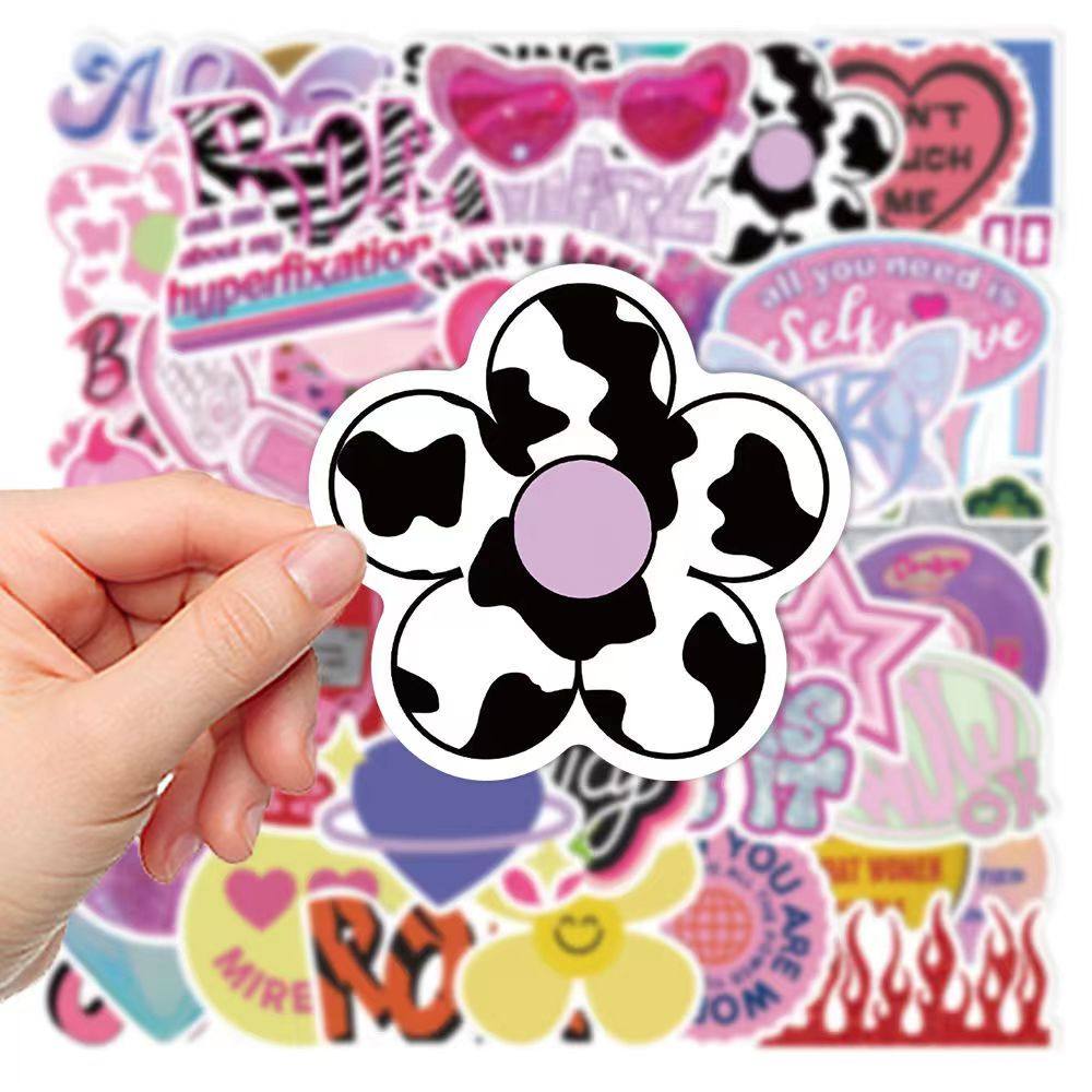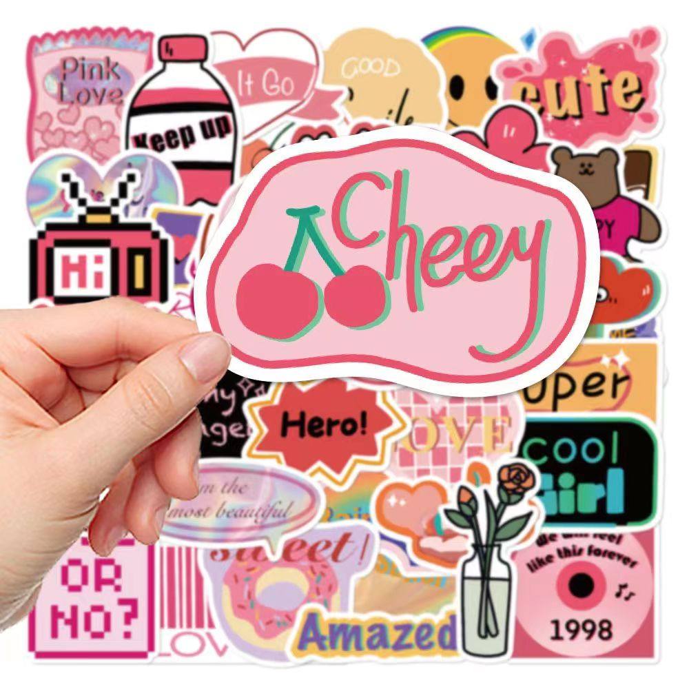 250张ins风少女心粉色贴纸Y2K韩国THENCE原创欧美复古手机壳贴画