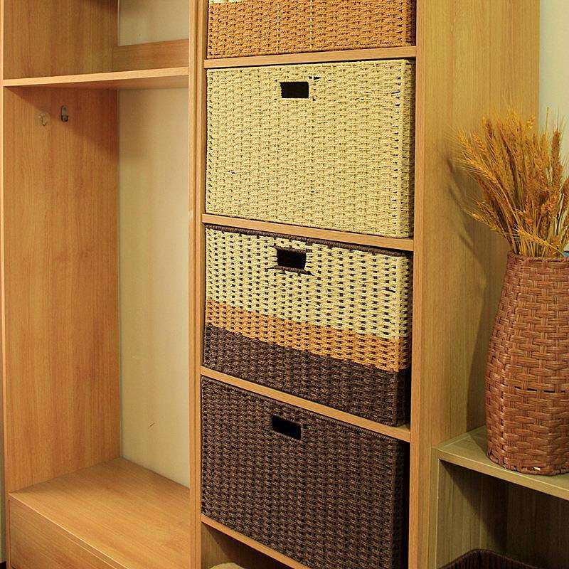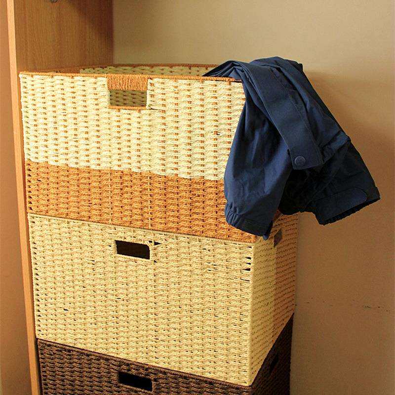 特大号仿藤编收纳筐整理盒家用草编杂物格子衣服衣柜储物箱编织篮