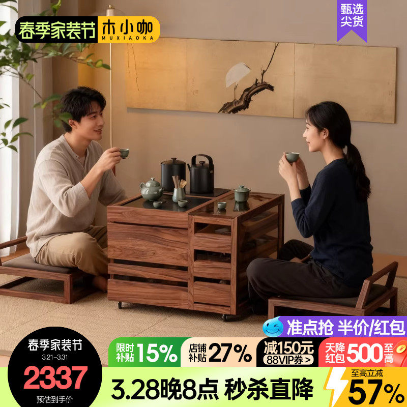 木小咖叁森阳台茶桌小户型可移动实木茶边几泡茶带烧水茶水柜茶台