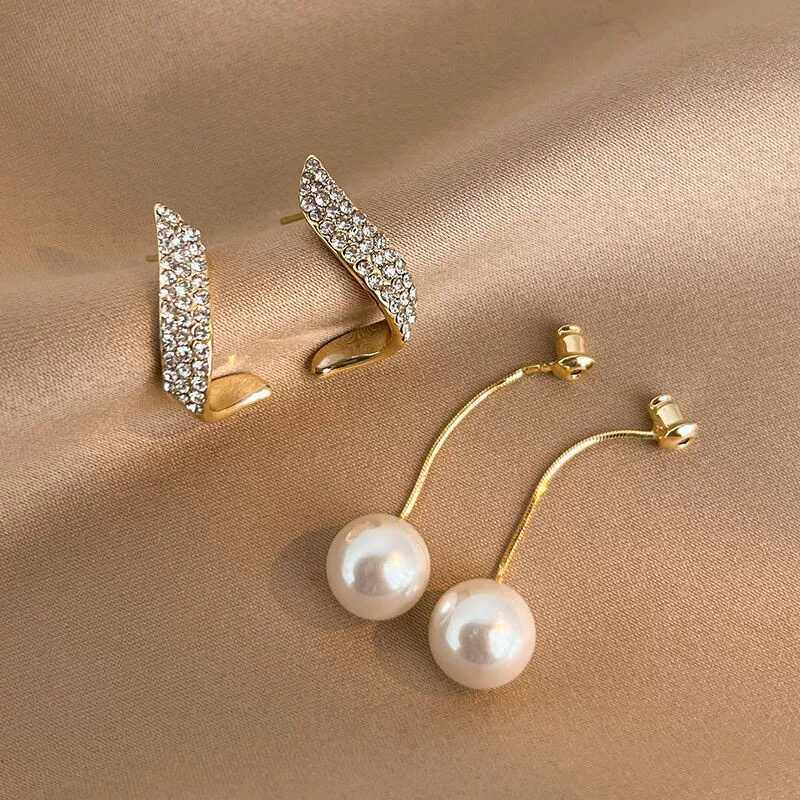 蝴蝶珍珠套装耳钉女轻奢小众高级感耳骨钉耳饰品2025新款爆款耳环