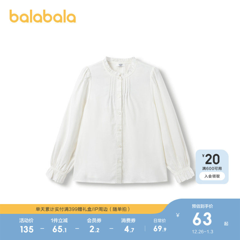 巴拉巴拉童装儿童长袖衬衫女童秋装2025花边衬衣百搭大童甜美时尚