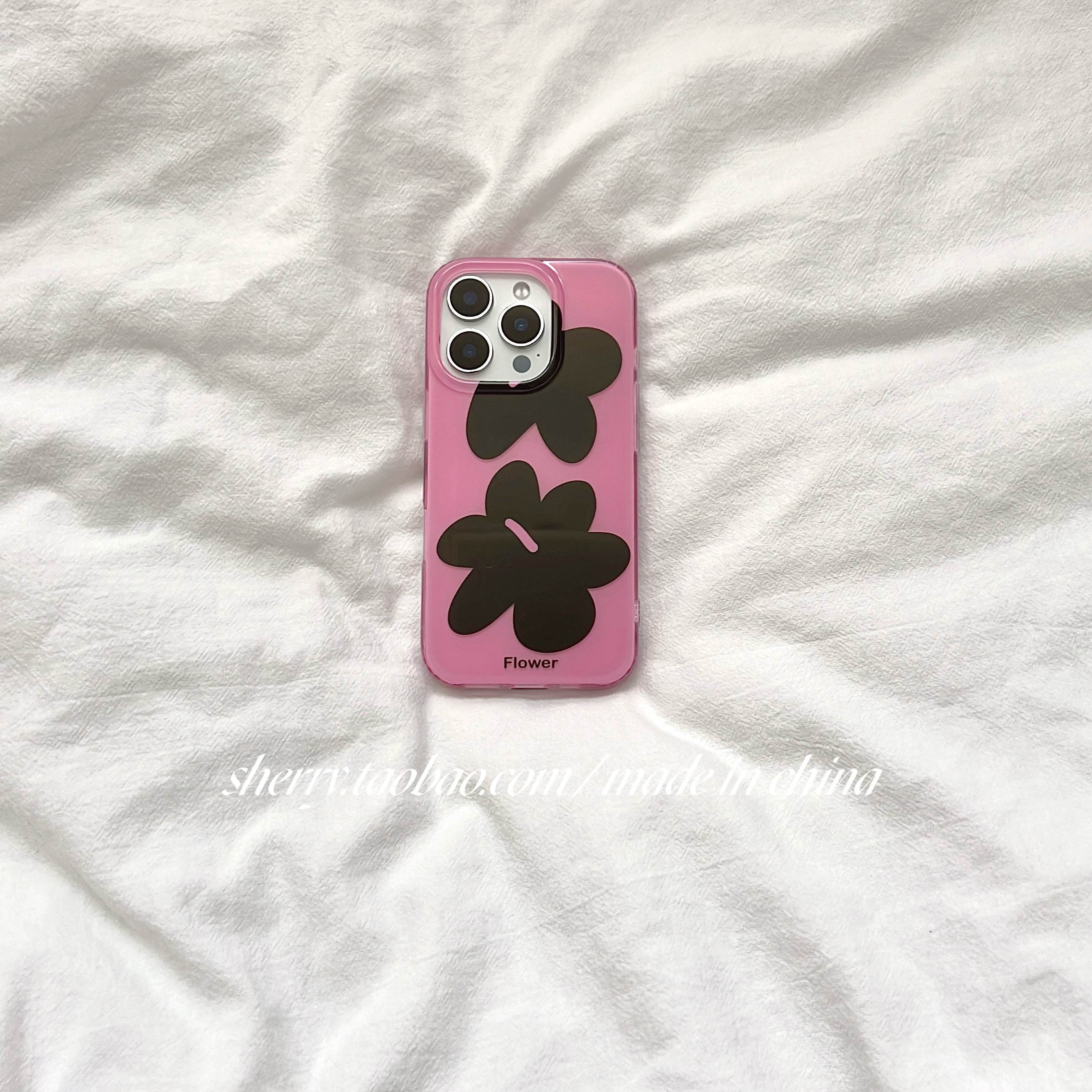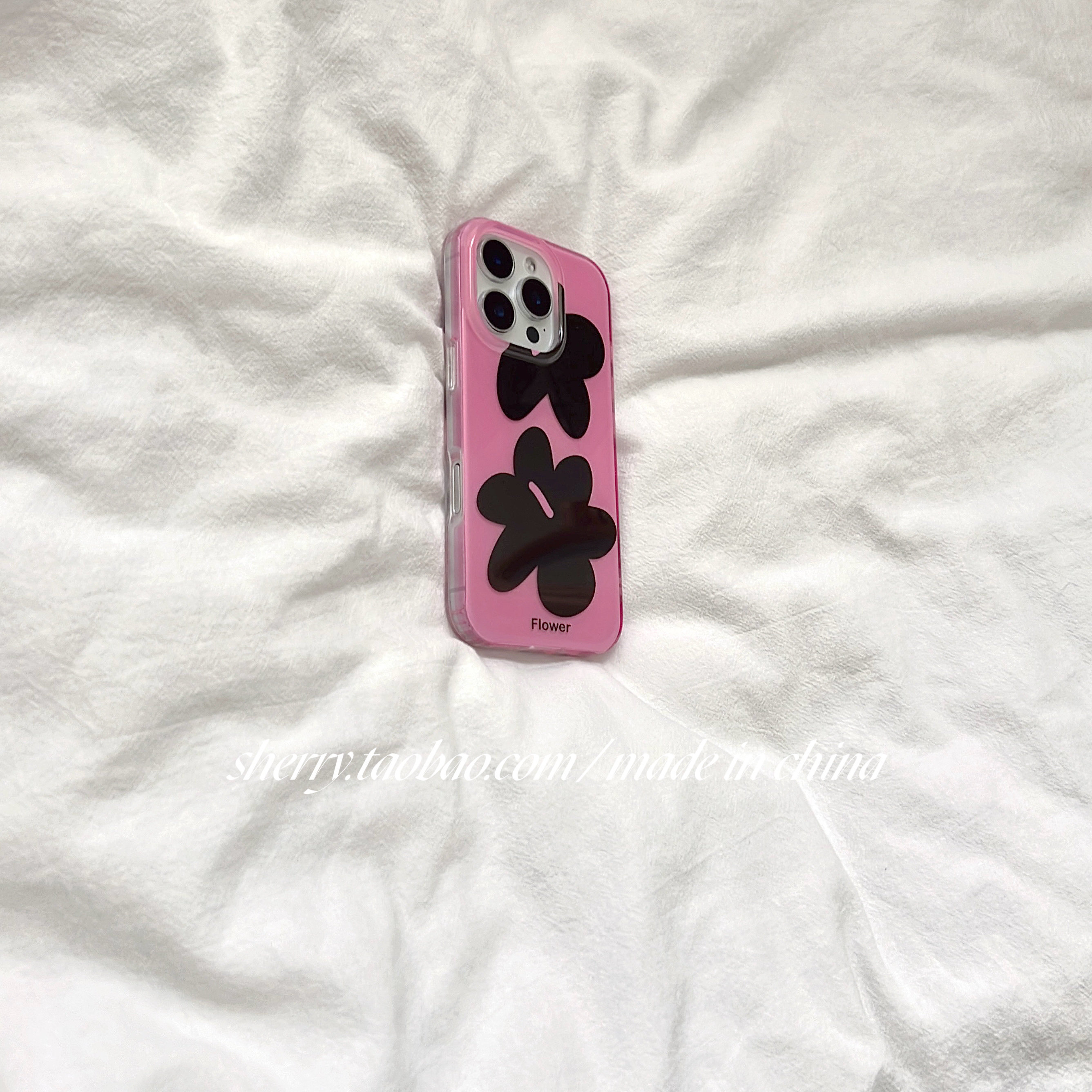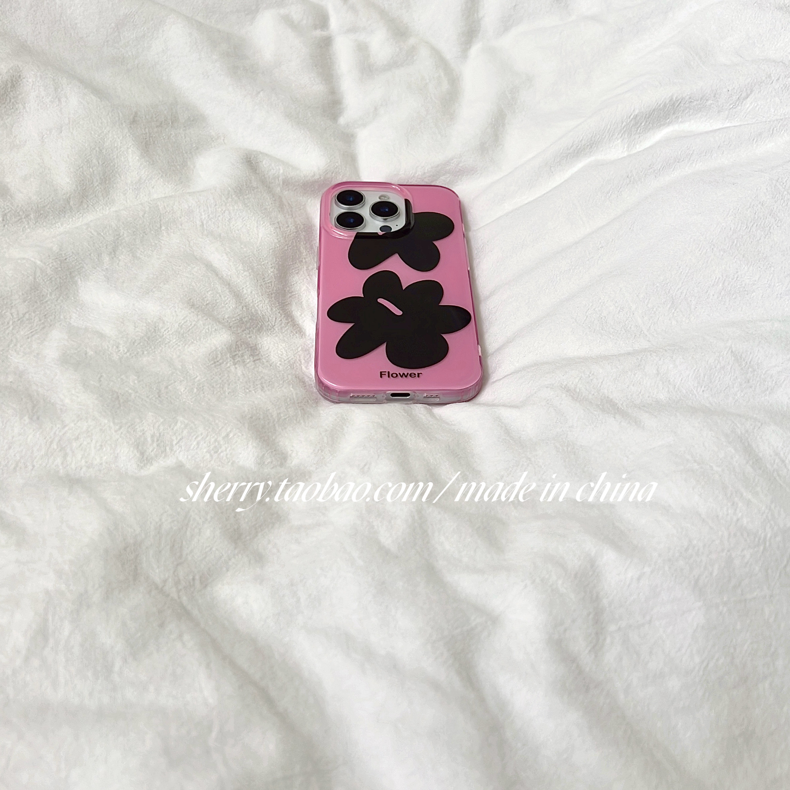 SHERRY*ins风高级感玫粉黑色花朵适用于苹果17ProMax手机壳iPhone16Pro小众少女心15简约14清新13甜美温柔
