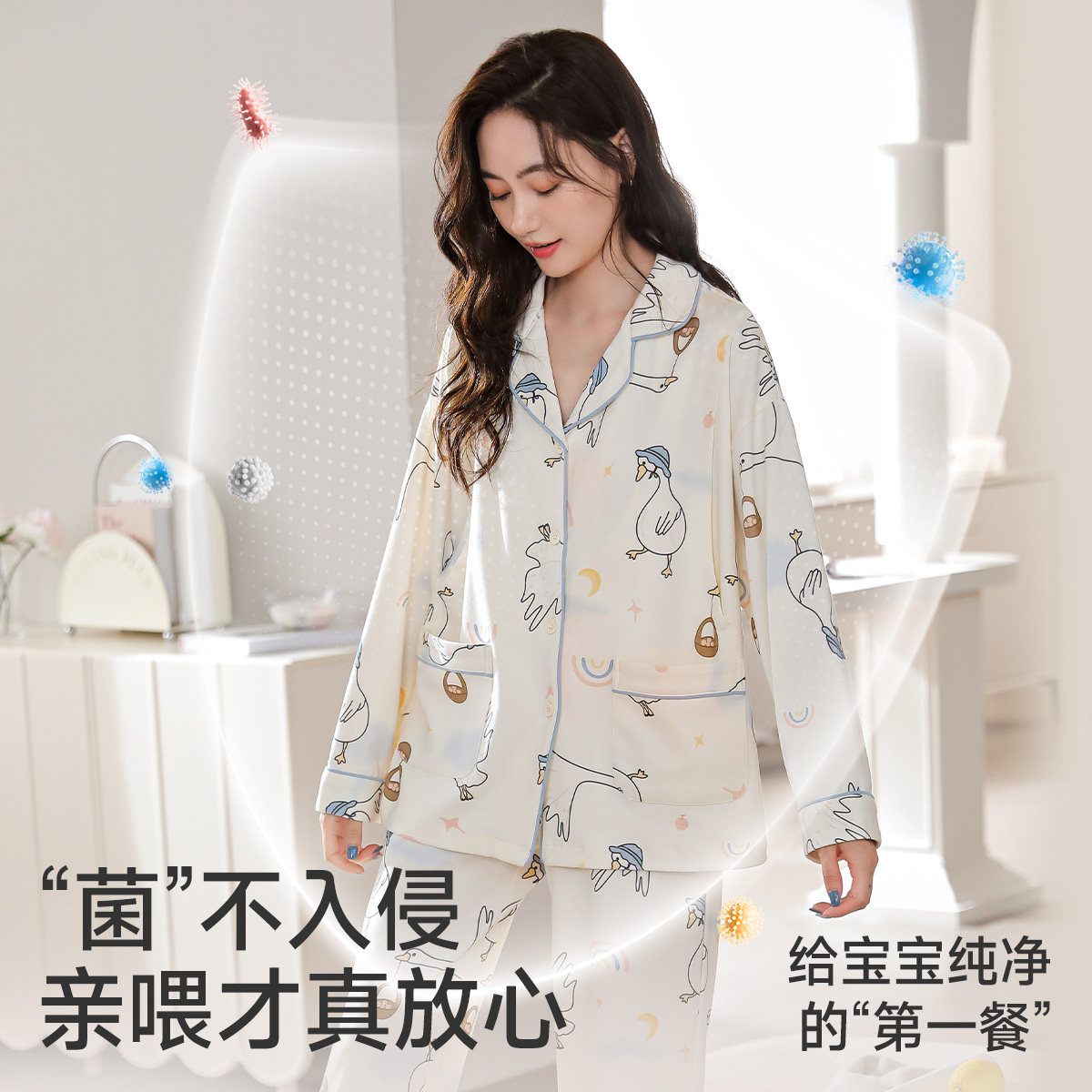十月结晶兜兜鸭纯全棉吸汗月子服哺乳睡衣7A抗菌12月家居服女冬季