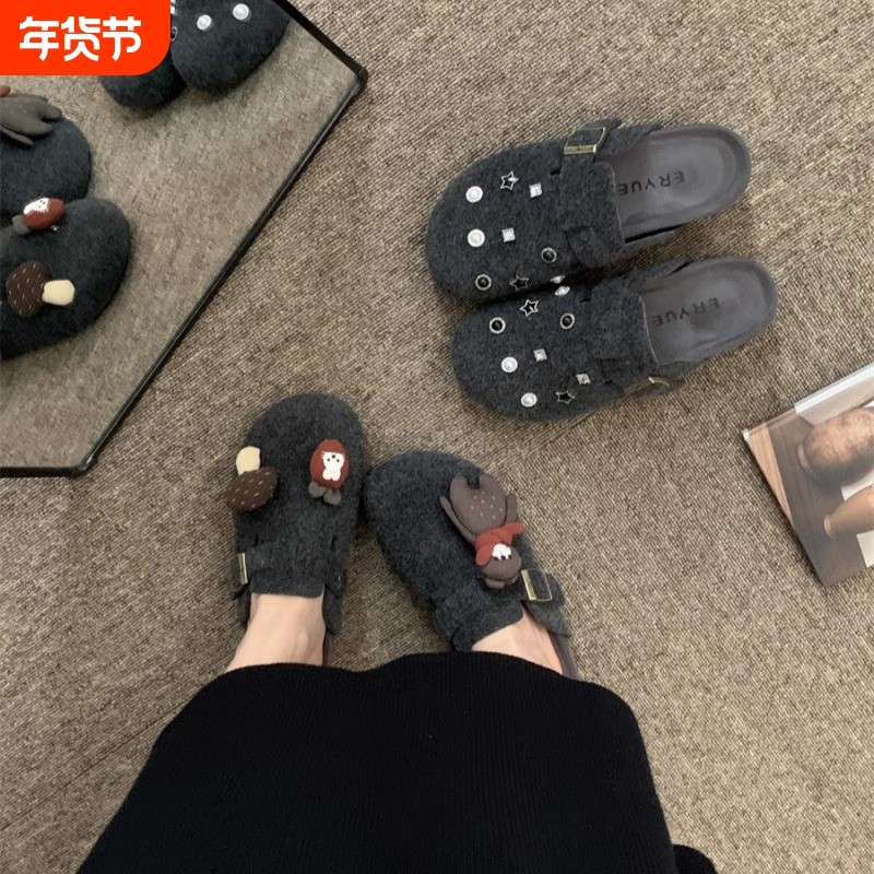 周雨彤同款厚底勃肯鞋女2025新款冬季加绒半拖鞋外穿增高穆勒鞋子