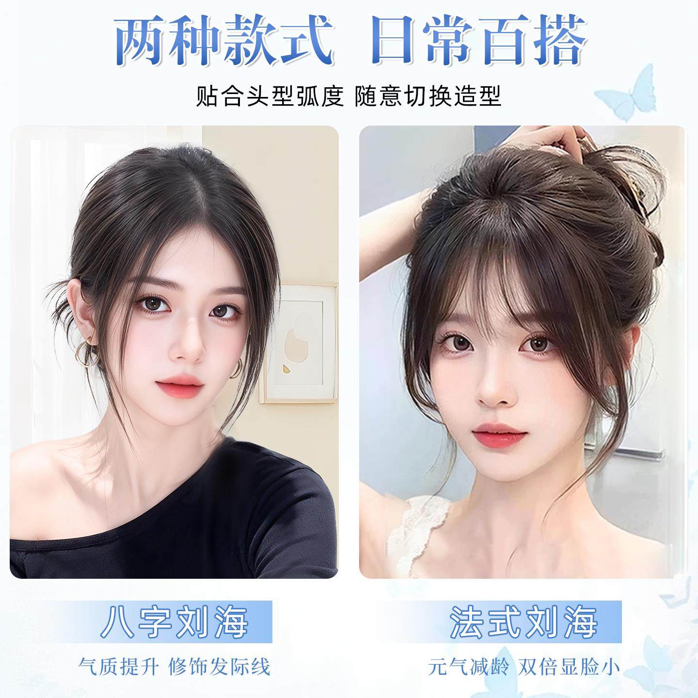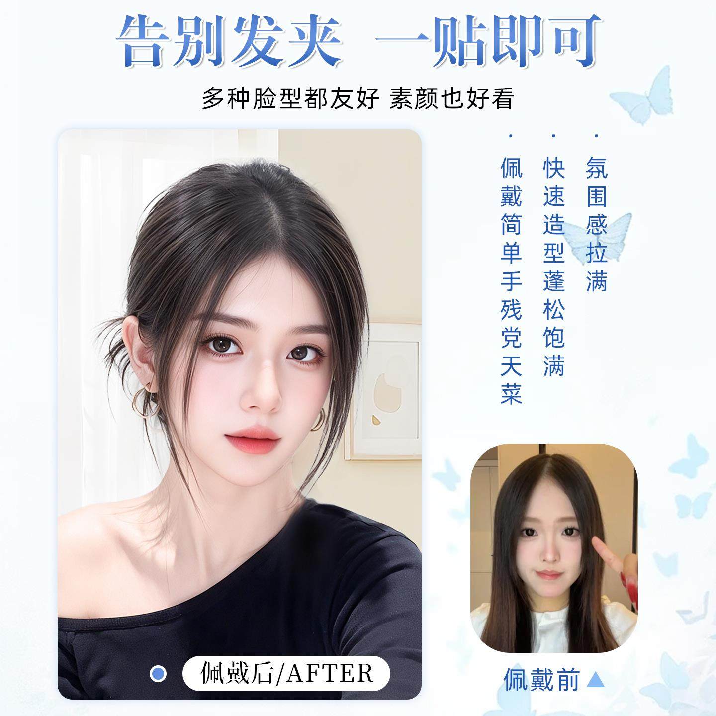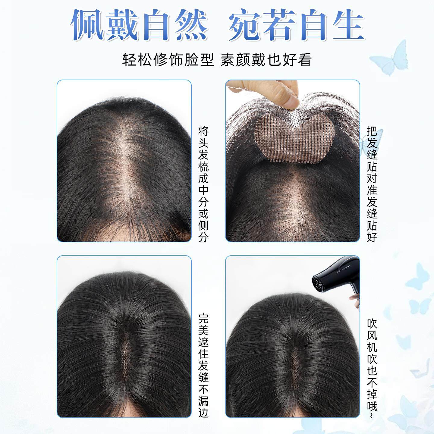 发卡假发女片头顶真发高颅顶无痕刘海发缝贴前额隐形魔术贴发际线