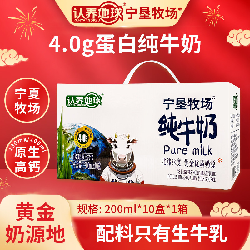【礼盒装】新日期4.0蛋白高钙纯牛奶200ml*10盒整箱宁垦牧场营养
