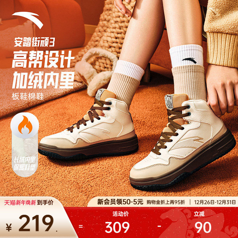 安踏街顽3丨加厚加绒保暖高帮板鞋女2025冬季新款耐磨防滑棉鞋
