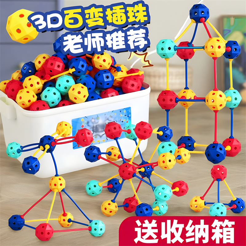3D百变插珠玩具儿童球形积木立体几何拼插大颗粒积木宝宝益智玩具