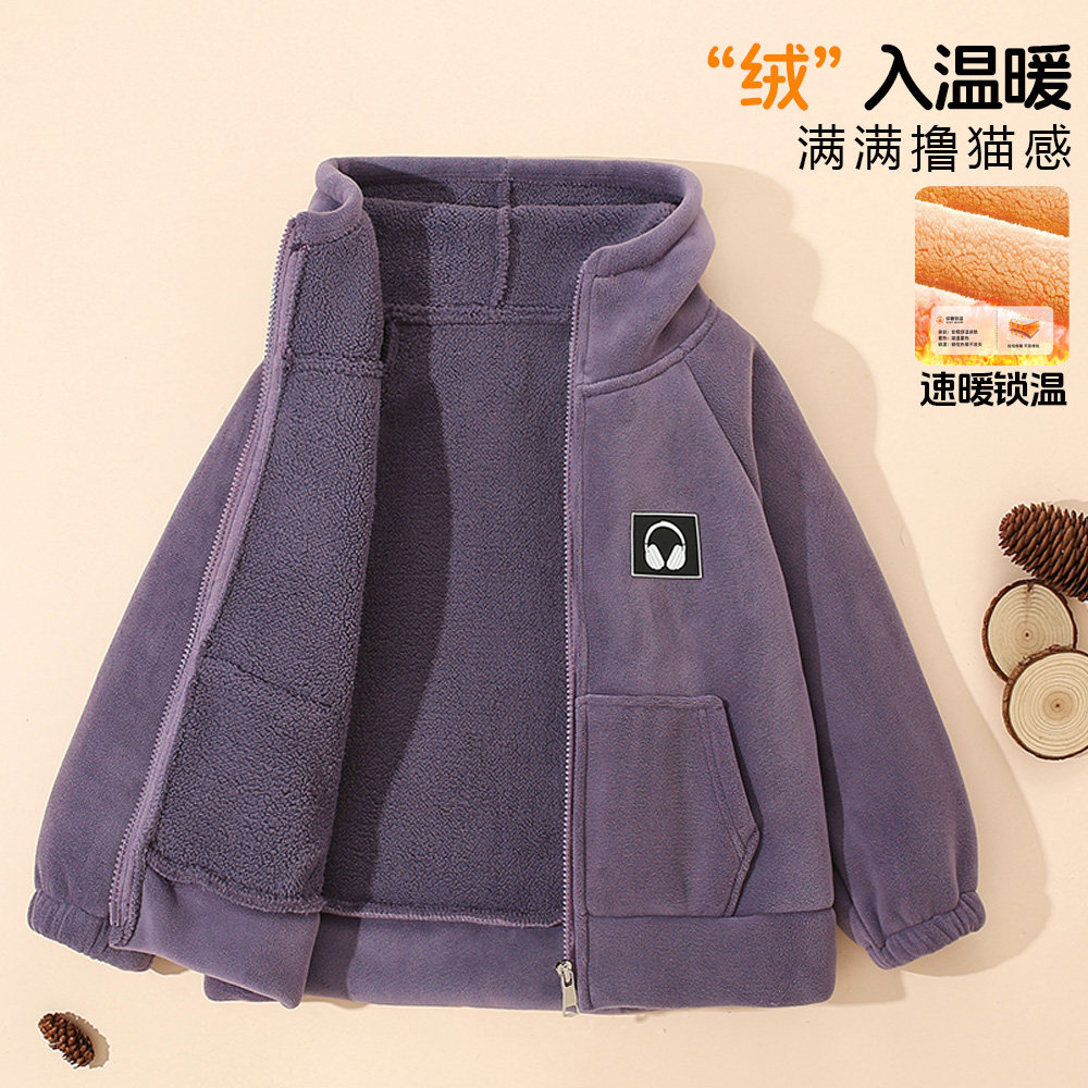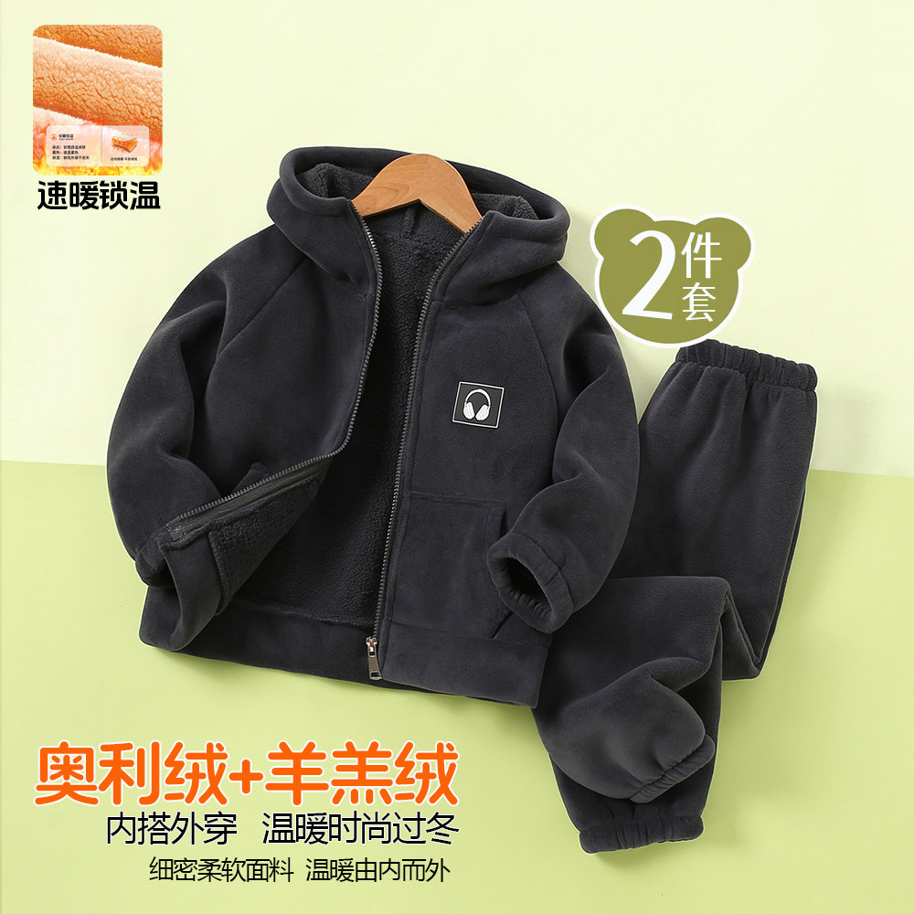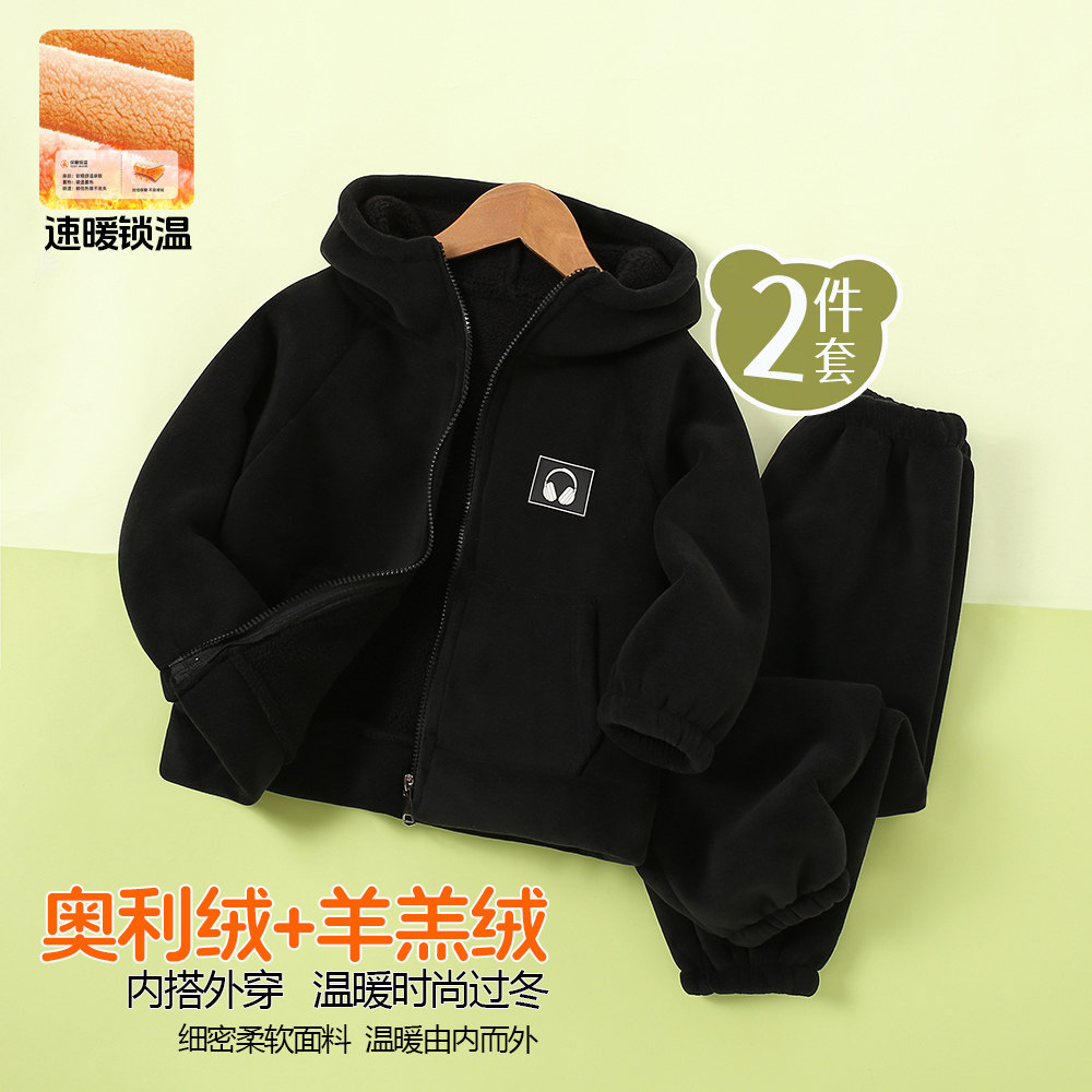 小黑托昵男女童连帽睡衣套装半边绒儿童家居服冬款加绒加厚空调服