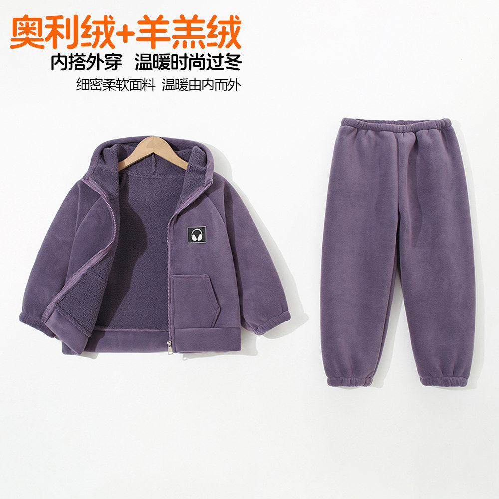冬季奥利绒加绒加厚款外穿情侣亲子家居服套装男女儿童奥粒绒居家