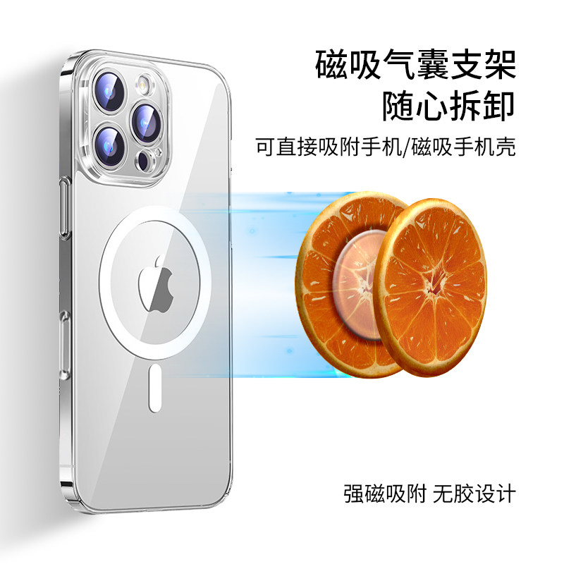 半颗橙子适用Magsafe磁吸手机气囊支架iphone16苹果15plus伸缩折叠14promax磨砂13mini直播指环扣12pro高级感