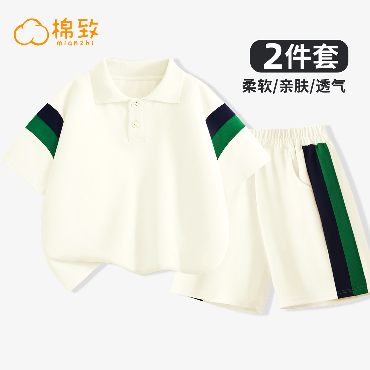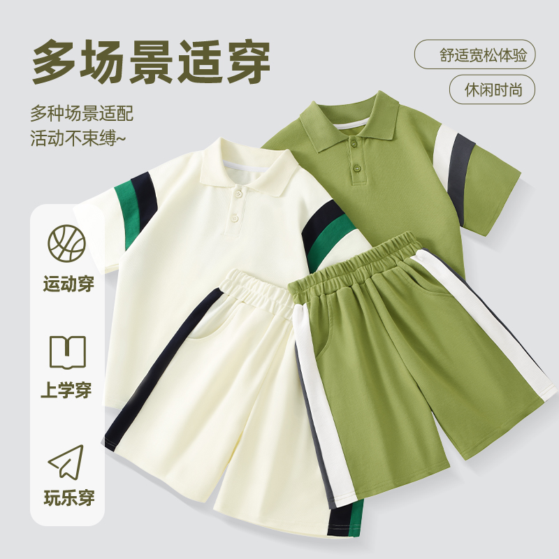 棉致童装男童裤子夏季2025新款洋气时髦运动短袖中大儿童夏装套装