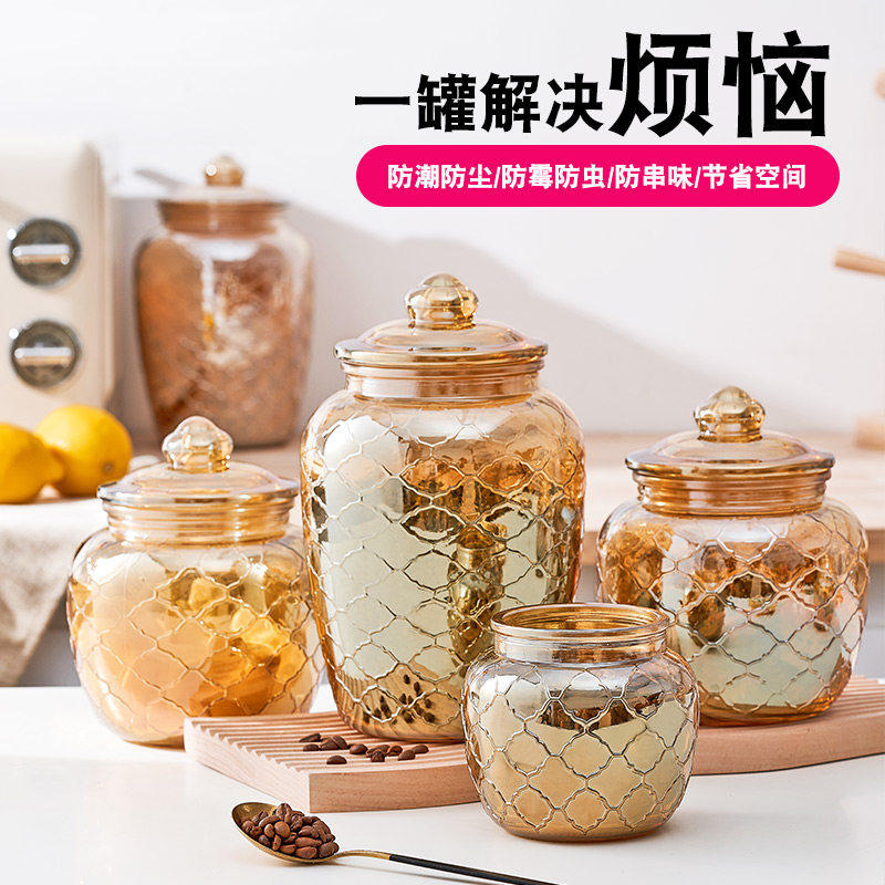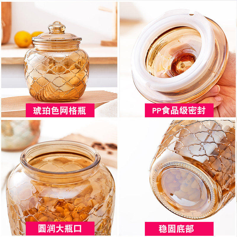 琥珀色无铅密封罐食品玻璃瓶泡菜坛子腌咸菜蜂蜜收纳盒空高颜值