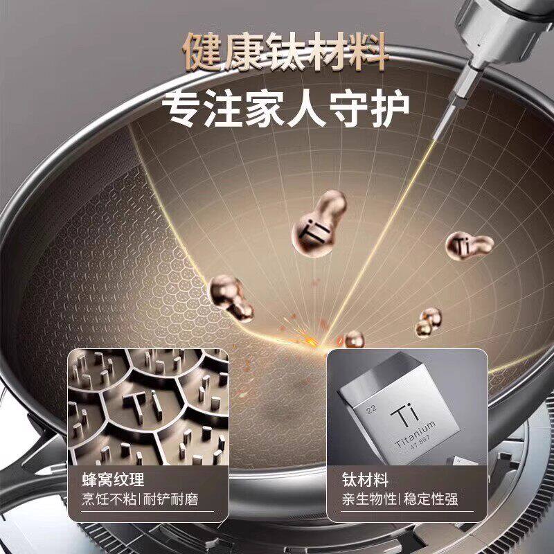 德国三头鹰无涂层钛锅不粘锅电磁炉燃气纯钛炒锅多功能家用炒菜锅