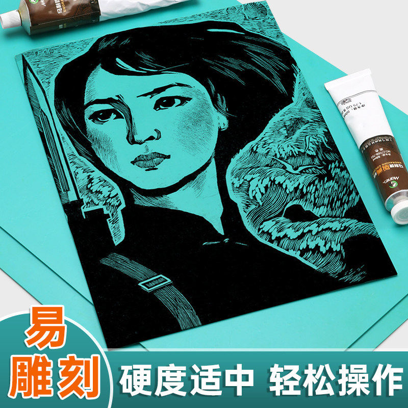 升级加厚版画胶板版画工具套装软胶绿色pvc胶板双面雕刻版画材料学生美术生专用油墨拓印专用麻胶板手工全套