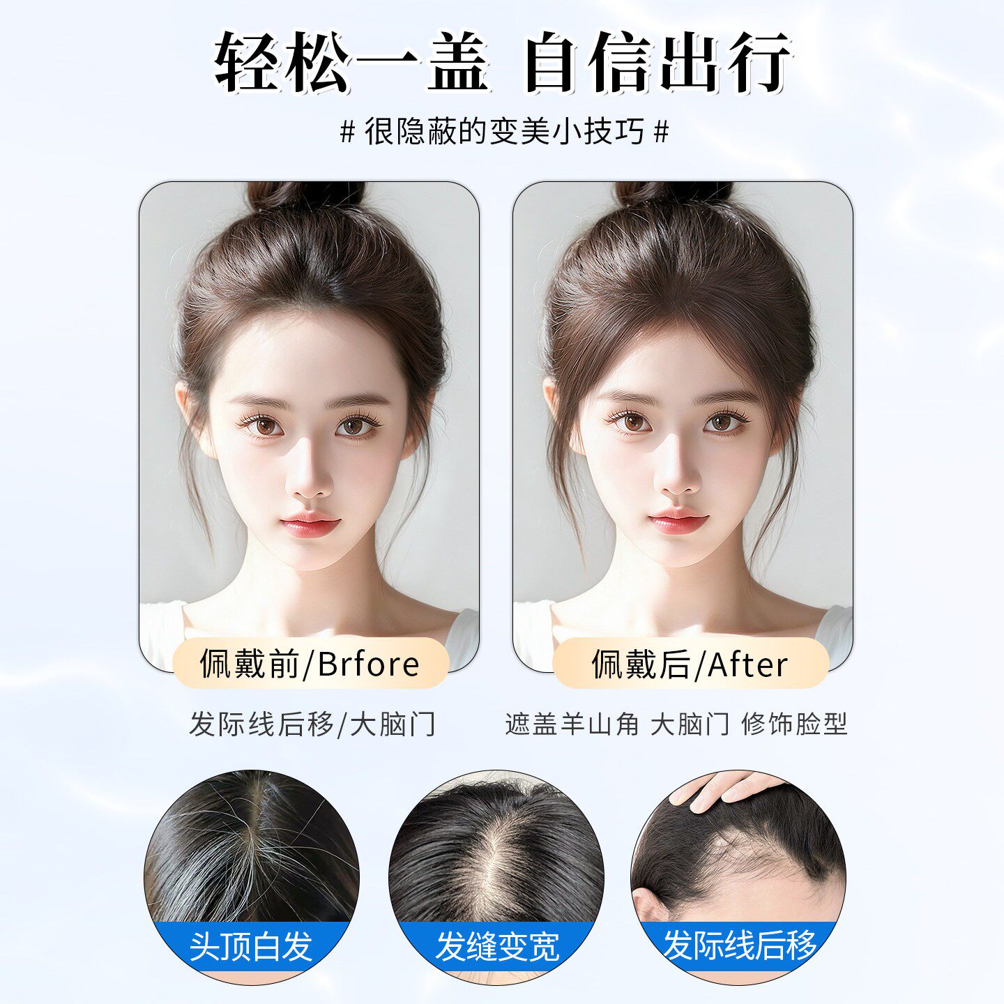 胎毛刘海假发女片头顶补发遮鬓角自然前额真发发际线假发贴