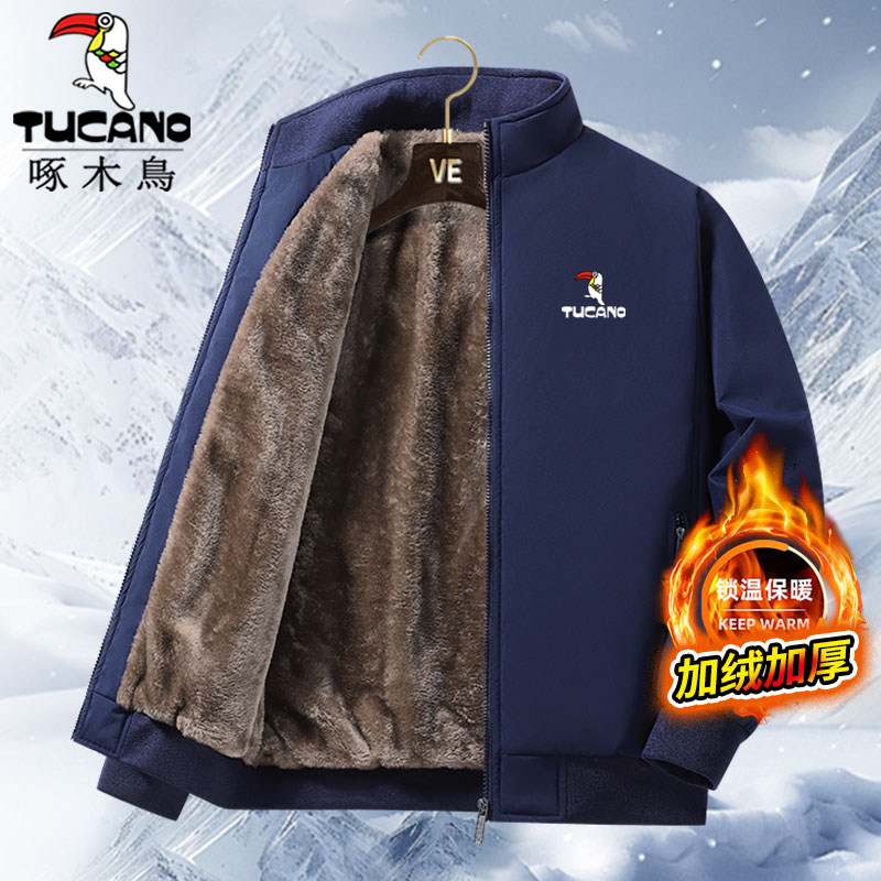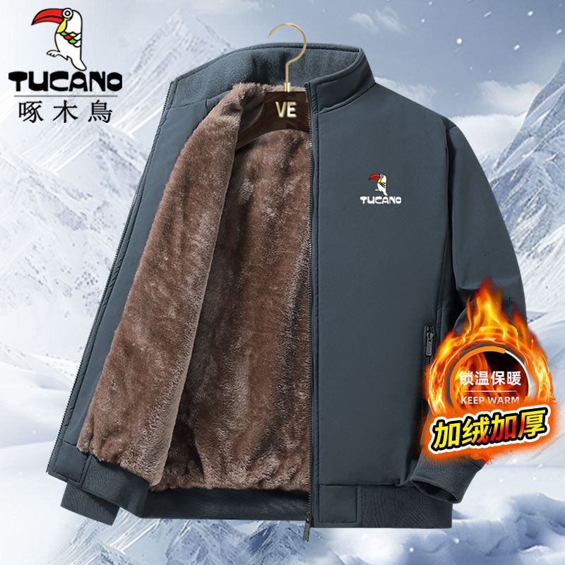啄木鸟外套男加绒加厚冬季棉衣爸爸装保暖棉服立领夹克防风薄款