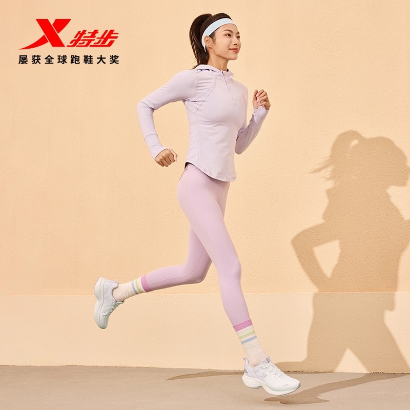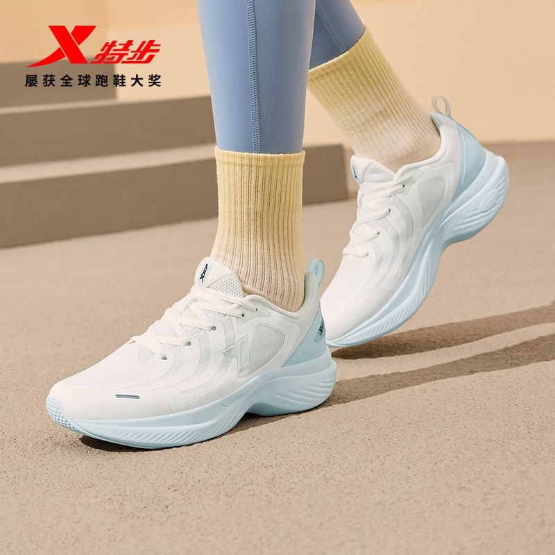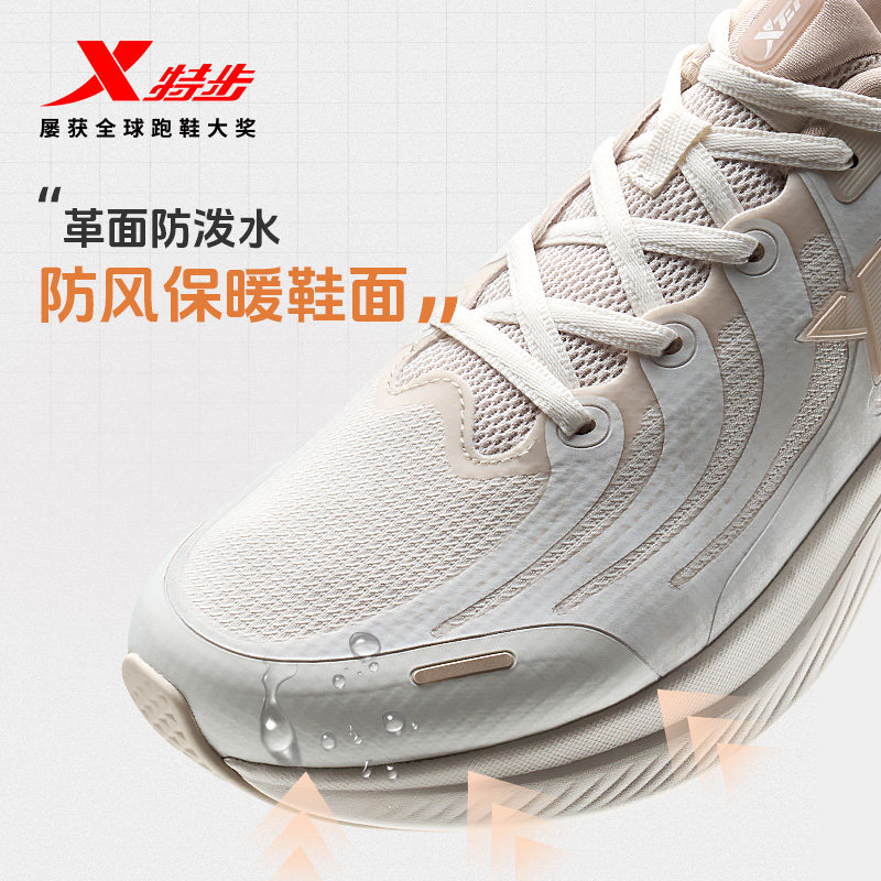 特步灵悦丨跑步鞋女鞋夏季新款减震运动鞋革面防泼水鞋子休闲跑鞋