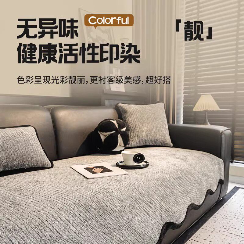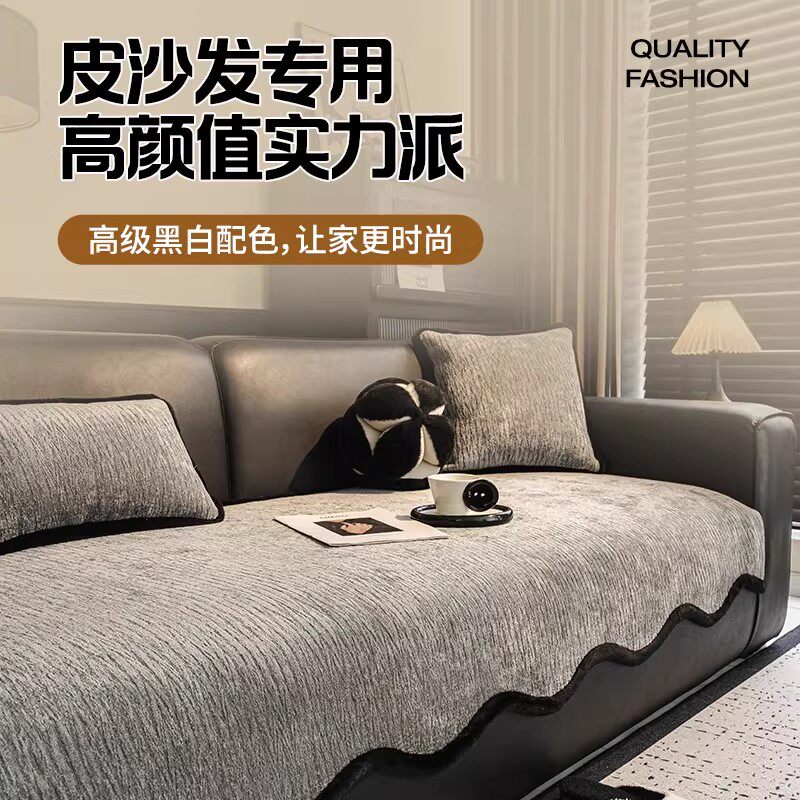 真皮沙发坐垫冬2026新款加厚雪尼尔固定防滑沙发垫四季通用盖布