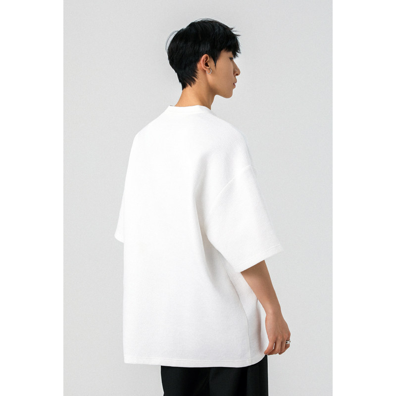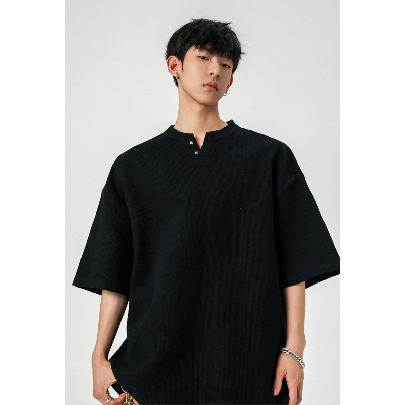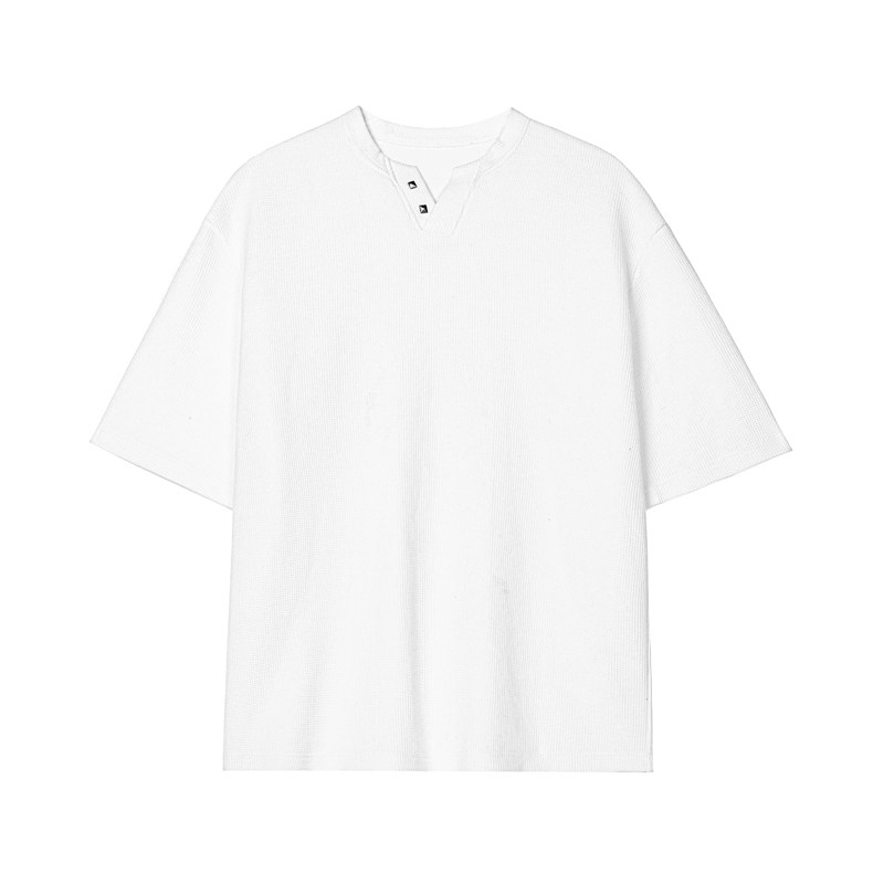 回力亨利领短袖T恤男士夏季2025新款华夫格冰丝大码五分袖体恤衫