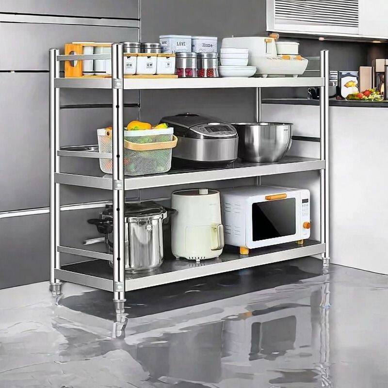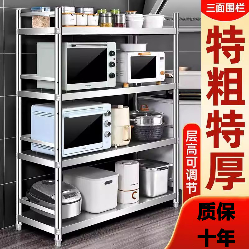 304不锈钢货架特厚多层加粗围栏落地加厚家用收纳货架子移动层板