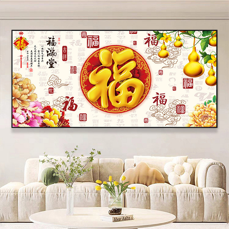 中式福字装饰画客厅自粘贴画卧室床头背景墙壁山水画新年春节年画