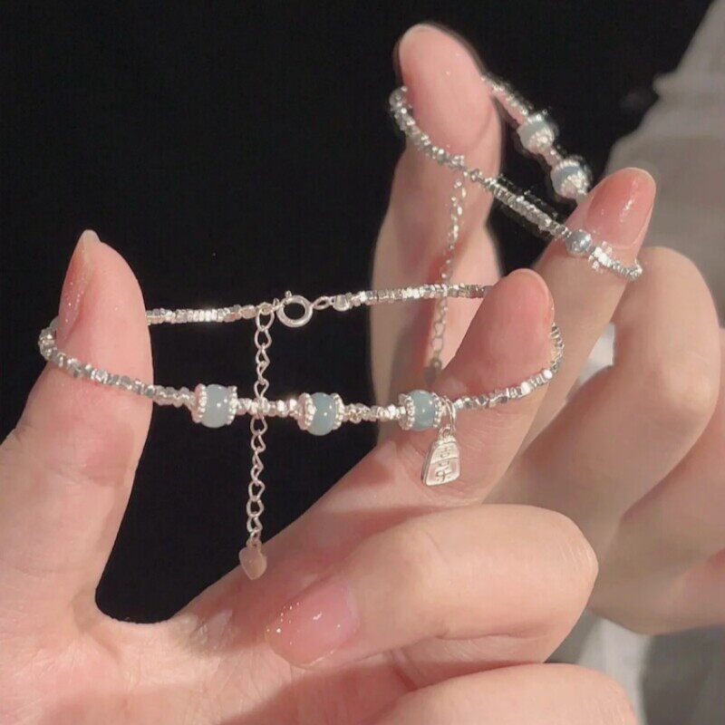 【幂琳】和田玉S999纯银手链女2024年新款喜乐福牌碎银子送女友生