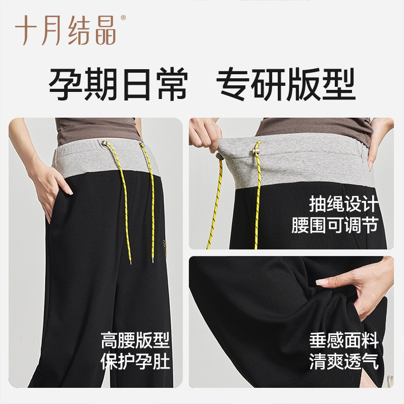 十月结晶孕妇裤秋季小个子垂感阔腿裤松紧腰部无托腹长裤2025新款