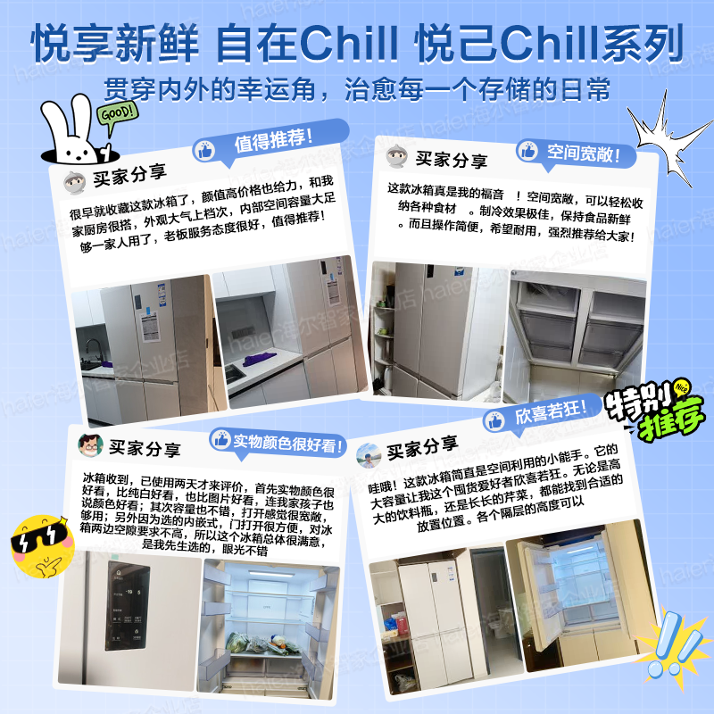 政府补贴超薄零嵌海尔统帅悦己懒人520十字对开四门大容量电冰箱